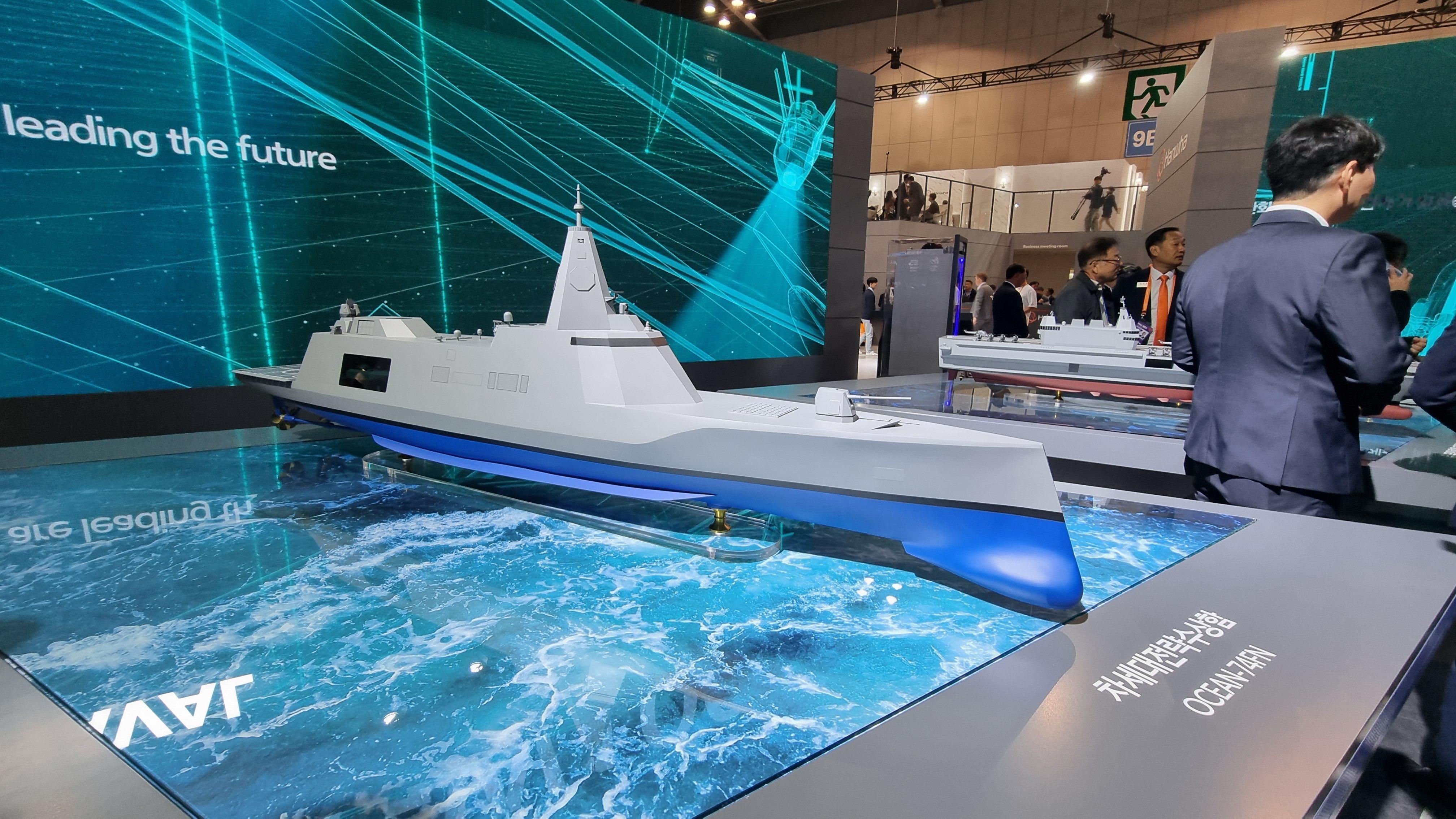 韩国韩华海洋发布了其“下一代战略水面舰艇”(OCEAN-74FN),内部配备了人工智能,可以快速识别内部火灾和其他问题。采用穿浪型舰首,可在波涛汹涌的海面上航行,并采用内倾型舰体,增强了隐身能力。
