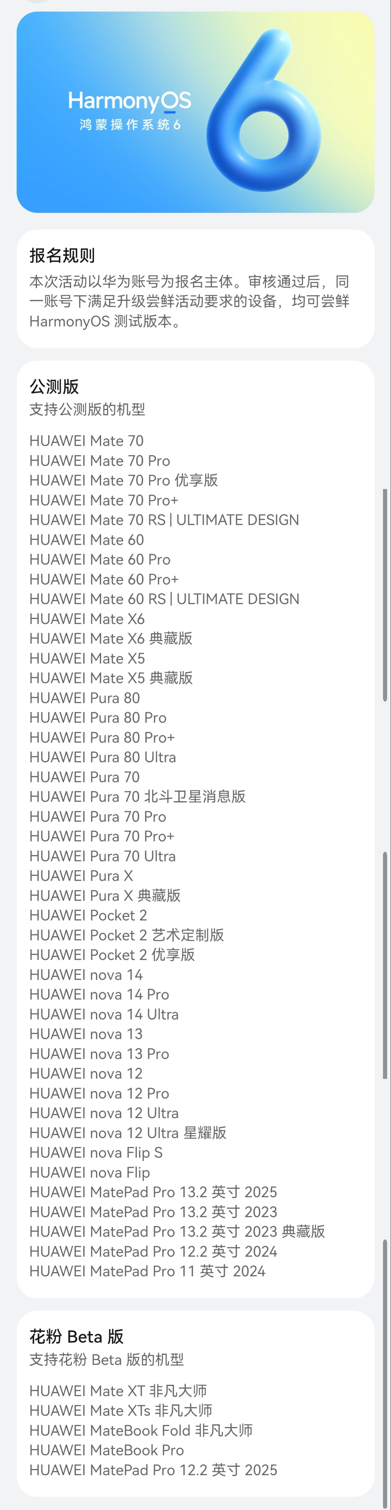 第一批尝鲜体验的机器很多,建议大家都升级体验,鸿蒙6新增的功能和优化的体验都很不错。