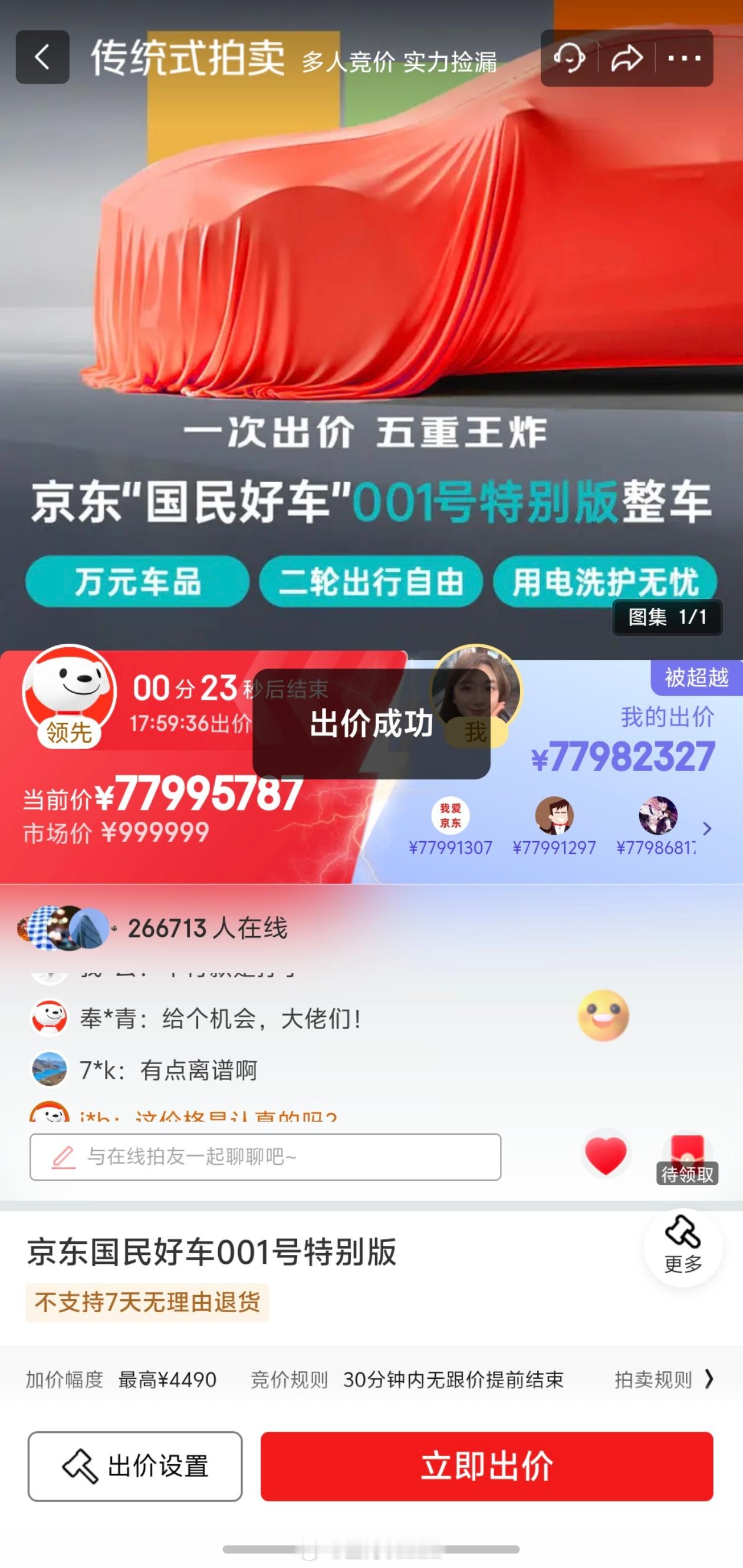 京东001号国民车20万人参拍