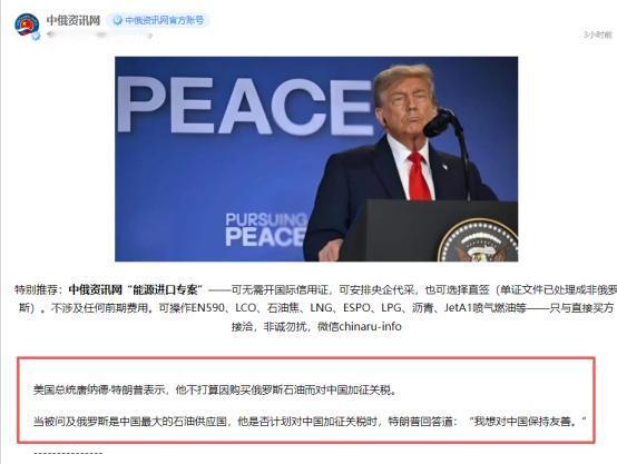 美国态度又变软了!10月22日,根据俄罗斯卫星通讯社报道,美国总统特朗普表示,他不打算因购买俄罗斯石油而对中国加征关税。当被问及俄罗斯是中国最大的石油供应国,他是否计划对中国加征关税时,特朗普回答道:我想对中国保持友善。 很显然,从威胁所谓的要对我们加500%的关税,到现在又不是想对中国保持友善,无疑,美国的态度明显是变软了。为什么美国的态度变软了呢? 原因只有一个,那就是美国希望跟我们谈判,在中美贸易战刚经历升高之后,美国也希望中美双方能够回到继续谈判的轨道上来。 显而易见2025年美国经济增速被砍到1.4%,通胀率却涨到3.1%,失业率直奔4.5%。这种情况下,美国根本经不起再打贸易战。特朗普团队原本以为加征关税能逼中国让步,结果关税像回旋镖一样砸回自己脑袋上。 美国企业进口中国零部件成本翻倍,只能涨价转嫁到消费者身上,老百姓钱包缩水,消费需求就跟着降。2025年美国进口订单量暴跌64%,制造业岗位不增反减,这就是活生生的教训。 更让美国头疼的是中国在能源和农产品领域早就找到了替代方案。俄罗斯石油占中国进口量的17%,每天196万桶的稳定供应,让中国能源安全有了保障。 美国想通过加税切断中俄能源合作,根本行不通。农产品方面,中国从美国进口的大豆锐减,转而去巴西、阿根廷采购,2025年从巴西进口大豆增长22%。美国豆农库存积压27%,只能眼巴巴看着中国市场流失。 还有关键的稀土问题,中国对稀土出口管制越来越严,从开采到加工全链条把控。美国军工、芯片企业严重依赖中国稀土,没有中国的稀土,美国不少工厂都得“断粮”。之前美国威胁加征关税,中国直接反制,对美国的一些农产品、能源产品加征了关税。这一来一往,美国发现自己根本耗不起。 而且美国的盟友也不太配合,印度虽然减少了俄罗斯石油进口,但那是因为美国施压加上运输成本飙升,印度自己也有难处。欧洲国家更不愿意跟着美国一起对中国加征关税,毕竟欧洲企业在中国市场有巨大利益。美国想拉盟友一起对抗中国,结果盟友们各有各的算盘,根本团结不起来。 中美之间的贸易谈判其实一直在悄悄进行,10月17日,美国财长贝森特与中方进行了视频通话,双方同意重启经贸磋商机制,聚焦农产品贸易、知识产权保护等容易达成共识的领域。 中国也扩大了对美国大豆、棉花的采购规模,10月上半月自美农产品进口额环比增长18%。美国则暂缓了对中国部分医疗设备的关税加征计划。这些都为双方进一步谈判创造了条件。 总的来说美国态度变软是形势所迫,经济压力、中国的反制措施、盟友的不配合以及特朗普的政治考量,都让美国不得不回到谈判桌前。中美贸易战没有赢家,只有通过对话和合作,才能实现互利共赢。希望美国能认清现实,不要再搞单边主义和贸易保护主义,踏踏实实跟中国谈出一个双方都能接受的结果。 来源:中俄资讯网