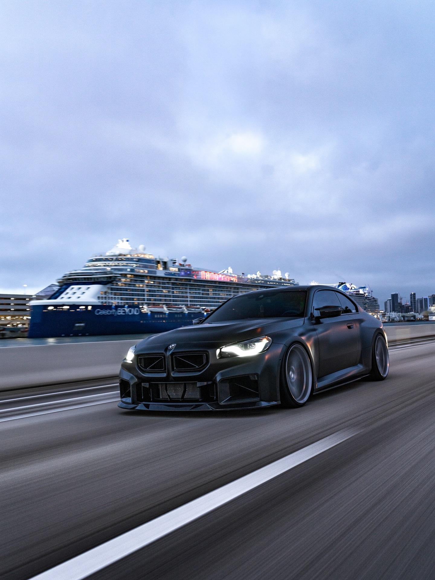 全黑宽体M2,配Vossen银色大脚,压迫感满满bmwsky[超话] 宝马m2