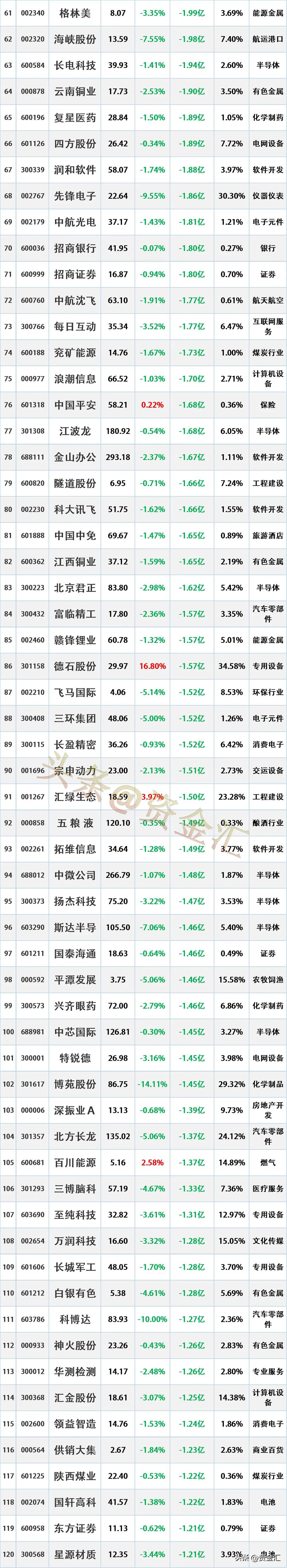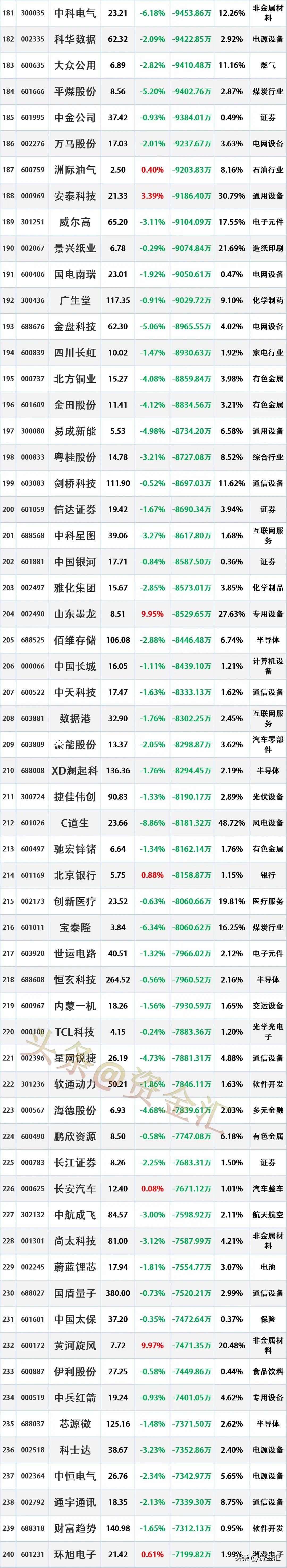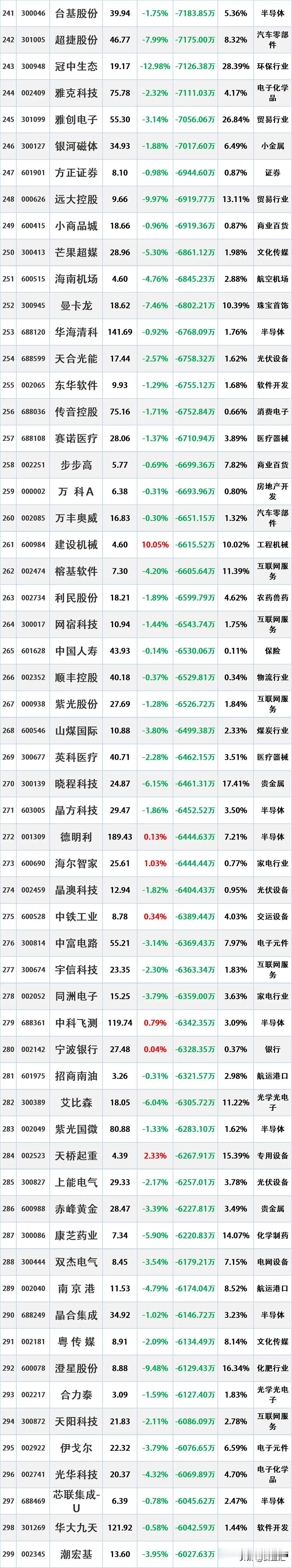 尾盘资金出逃,10月22日主力资金大幅流出的股票名单。 资金流出是指在一定时期内(如一天、一周等),主动卖出某只股票的资金量大于主动买入该股票的资金量。主动卖出是指投资者以买方的报价直接成交,显示出投资者对该股票的消极持有或抛售意愿。