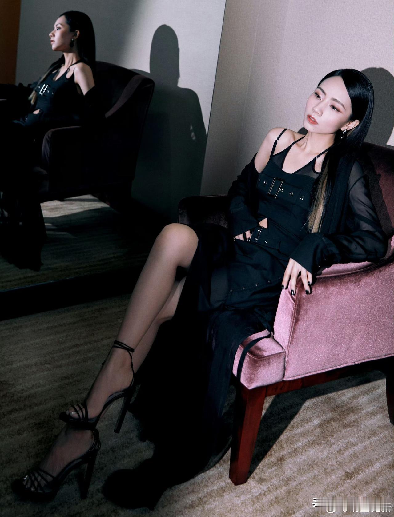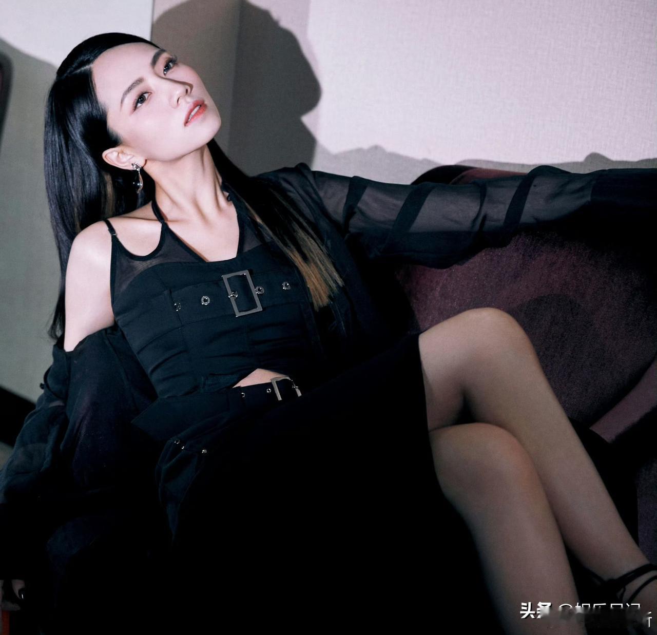 刘惜君暗黑女王风!一袭透视黑裙慵懒端坐,黑色绑带高跟下的“玉足”太抢镜。