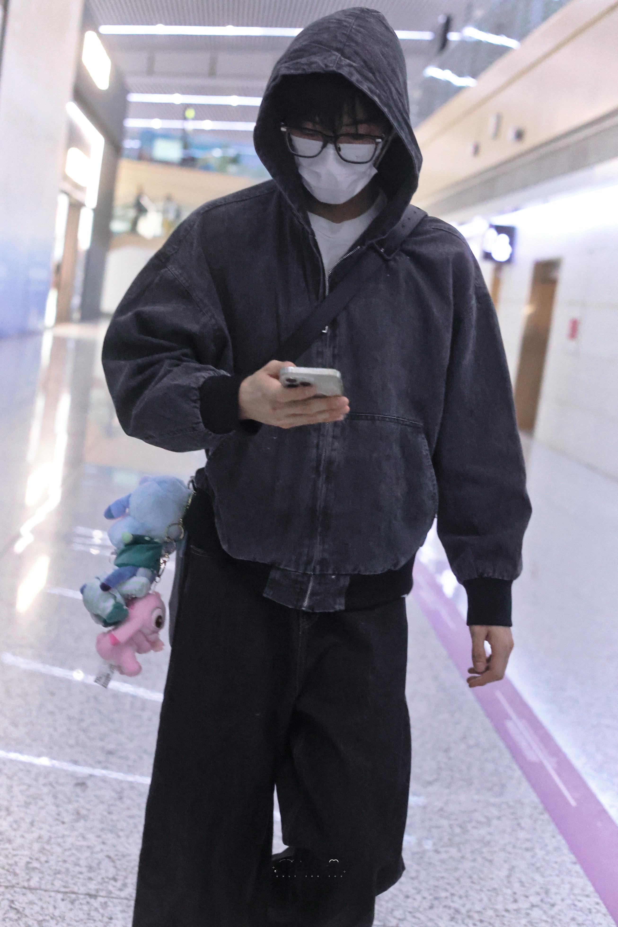 黑框眼镜look👓包上好多挂件娃娃啊~