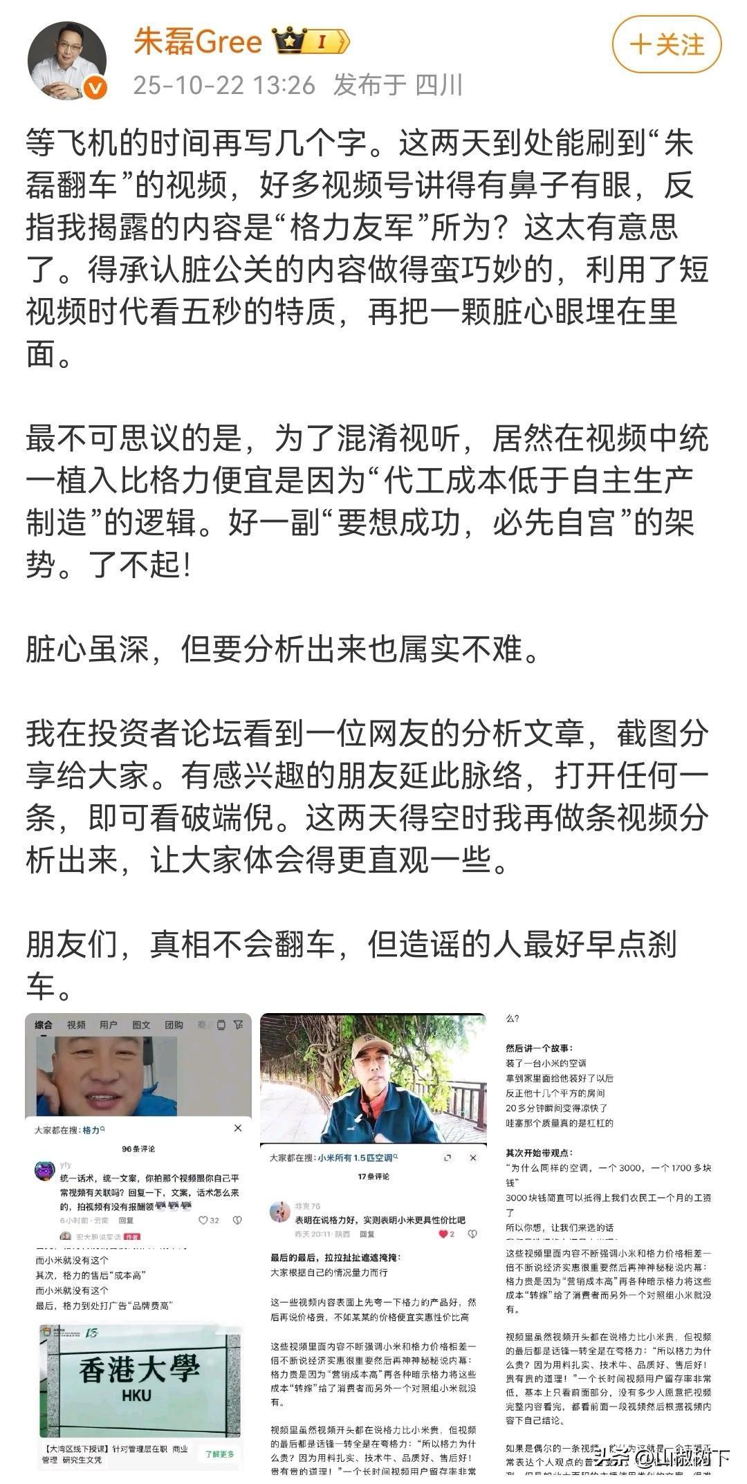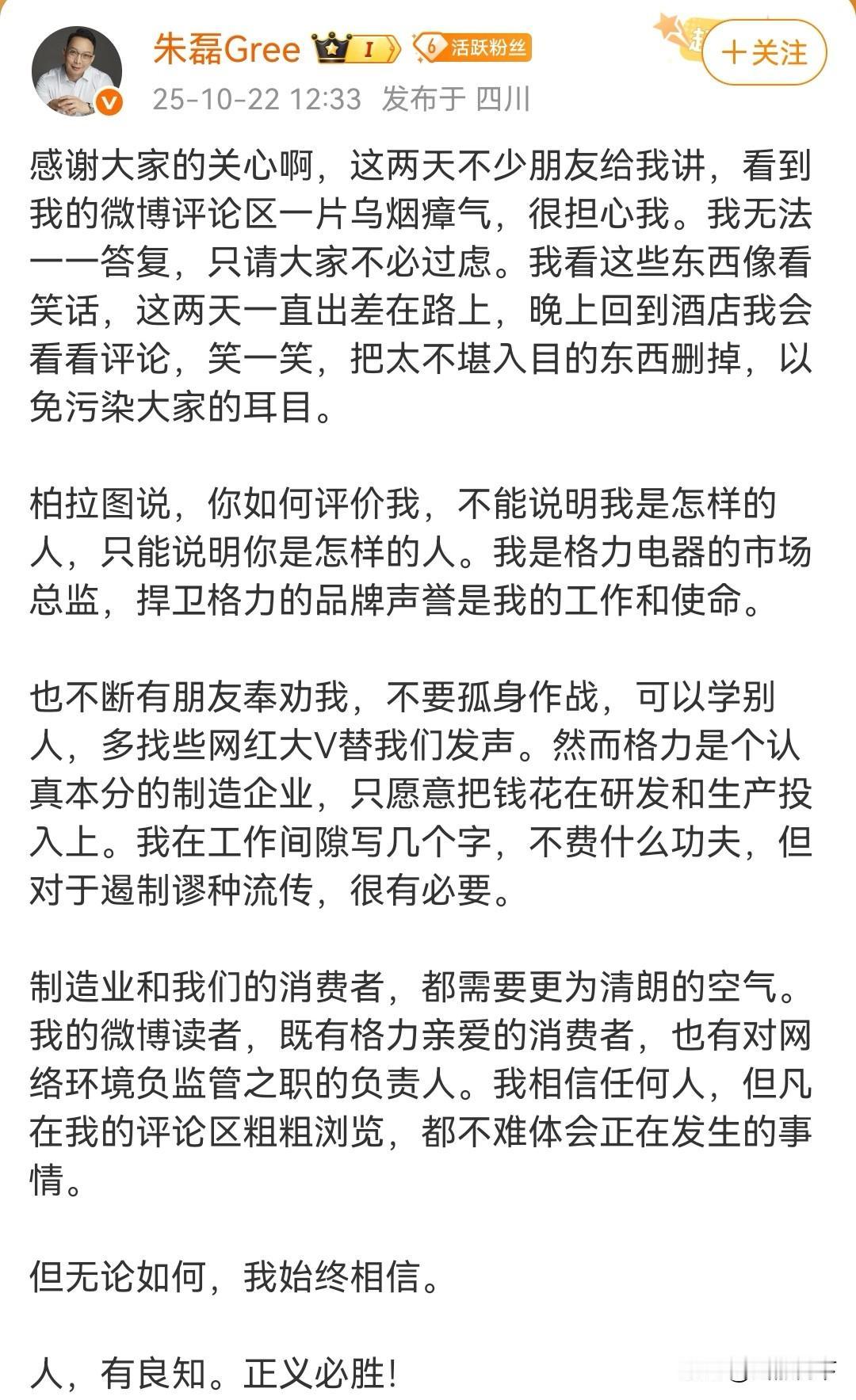 现在每天都要打开格力电器市场总监朱磊的微博,看看和不群这场口水仗打得怎么样了,今天朱总在四川[笑哭][笑哭]