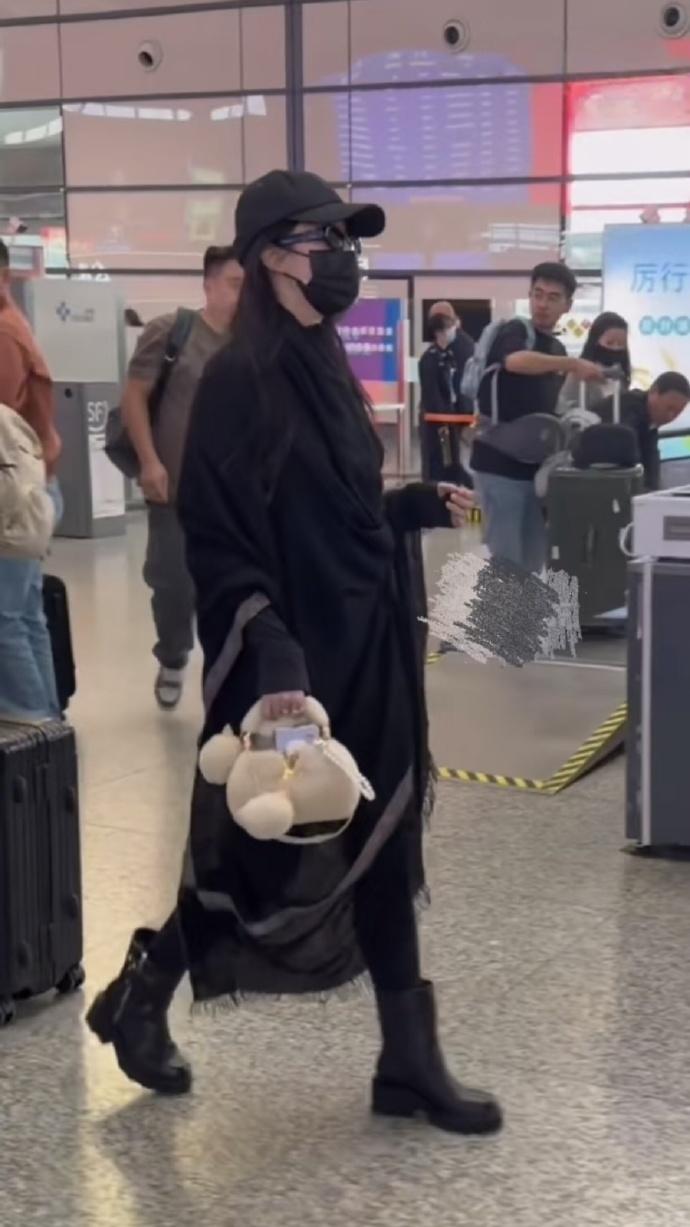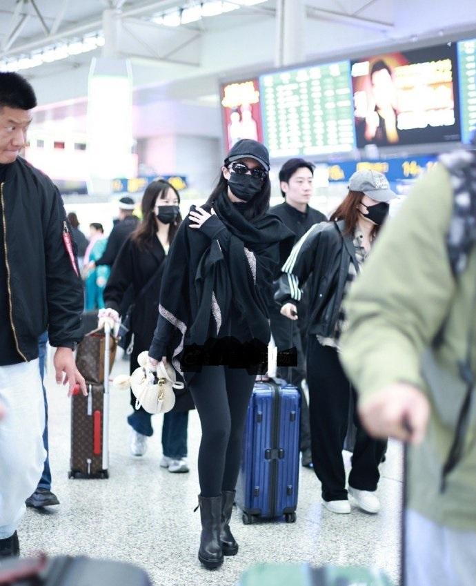 今天刘亦菲现身上海机场,她这回穿了一身黑色的衣服,不过显得潇洒又迷人。 刘亦菲里面穿黑色运动风紧身外套,下身搭配黑色细腿裤,秀出了纤细的美腿,真的是好有魅力。 她脚踩黑色的短靴,头戴黑色棒球帽,增添了潮流感和干练范儿。 刘亦菲外面披着黑色的披风,展现出了洒脱时尚的气质,真的好迷人。 她留着漂亮的披肩长发,尽显淑女风情,戴上墨镜之后有种酷酷的感觉,还很有国际大牌明星气势。