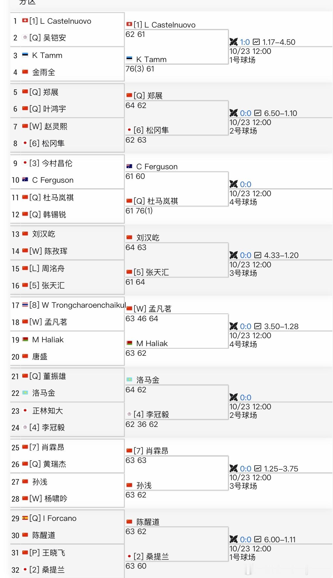 🇨🇳肖霖昂、🇨🇳张天汇 、🇨🇳孙浅、🇨🇳陈醒道、🇨🇳刘汉屹、🇨🇳郑展、🇨🇳杜马岚祺、🇨🇳孟凡茗晋级第二轮