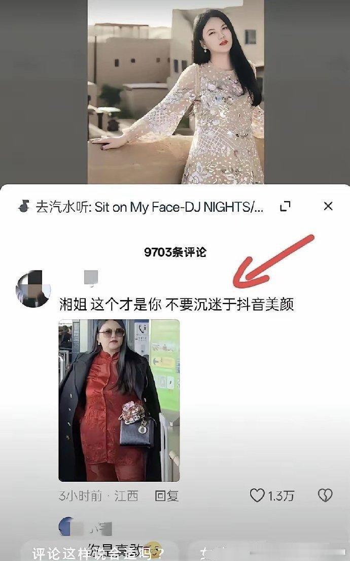 有的网友说:湘姐,你不要沉迷于抖音美颜,要正视真实的自己。