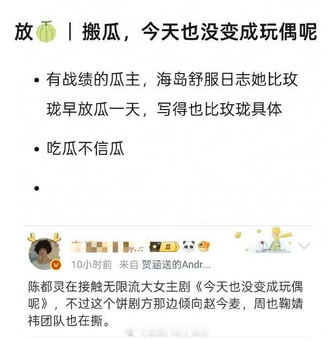 🍉陈都灵、鞠婧祎、周也、赵今麦四大流量花都在接触《今天也没变成玩偶呢》,这个🫓这么香的吗?[笑cry]