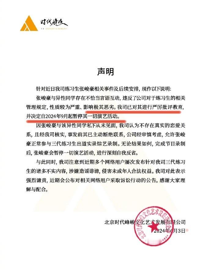 陈奕恒新歌hurts粉丝对时代峰峻的信任危机已经无法挽回,声明如同一张废纸,前有张峻豪暂停一切演艺活动却开演唱会,后有陈奕恒离开TF家族却发歌。现在的养成系早已变味。