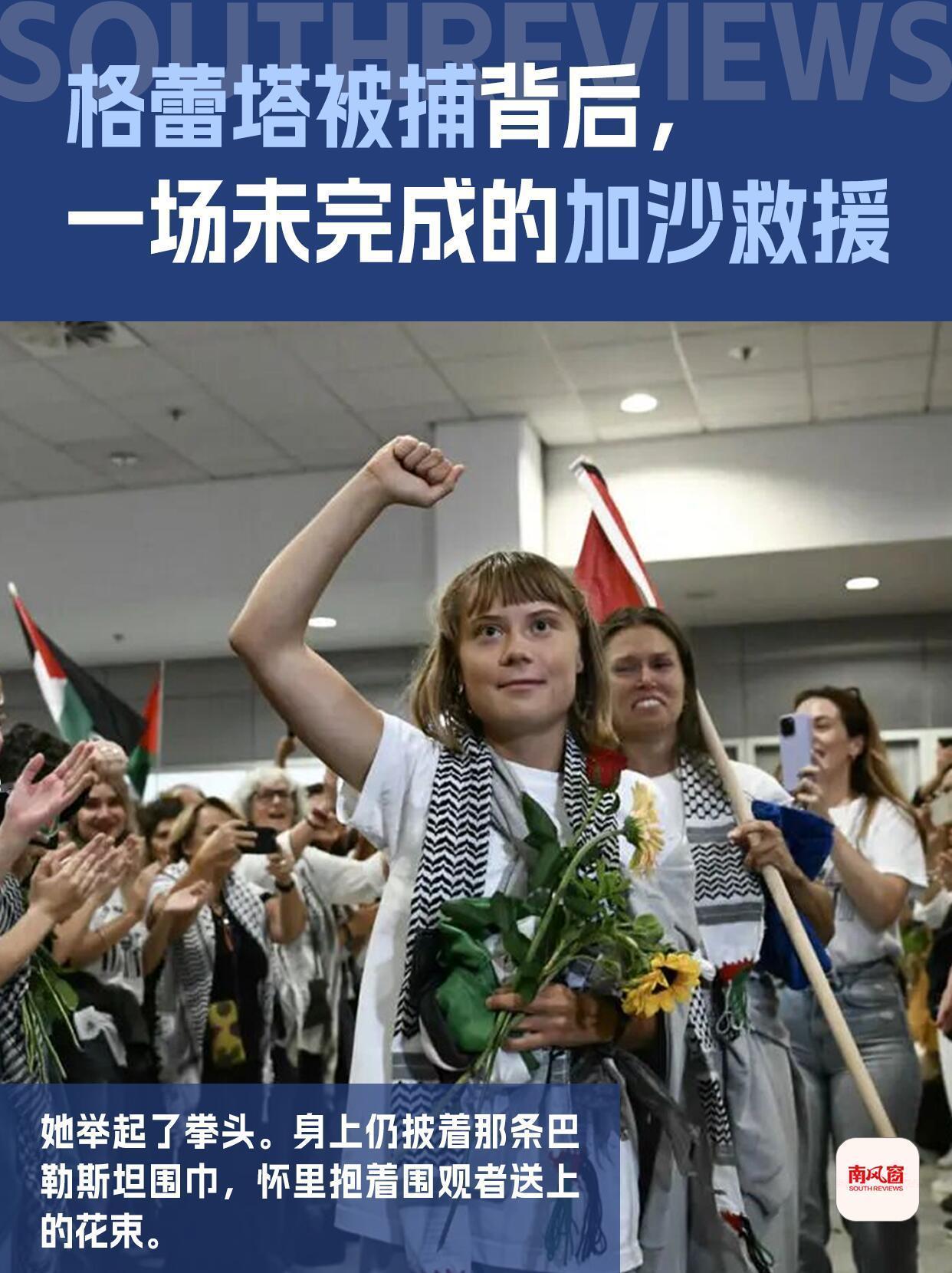 好的,这是对原文的改写: 环保少女格蕾塔·通贝里最近又上新闻了,不过这次不是因为环保,而是因为参与了一个叫“全球坚韧船队”的行动,在以色列被逮捕关押了几天,最后在10月6号被遣送到了希腊雅典。 她下飞机的时候,身上还披着那条标志性的巴勒斯坦围巾,手里捧着支持者送的花。面对来接她的人群,她没怎么提自己被抓的细节,比如被拖拽、被逼着亲以色列国旗这些事,而是直接把矛头指向了更大的问题。她说她们不是英雄,真正重要的是加沙正在发生的“种族灭绝”,她认为现在的国际体系根本保护不了巴勒斯坦人,连最严重的战争罪行都阻止不了。 这次行动阵仗挺大,有50多艘船从欧洲开过去,想冲破以色列对加沙长达16年的海上封锁。按以色列的说法,当天他们一共驱逐了171个人,但还有几十号人被关在监狱里,正在绝食抗议。 说起来,这种用民船去挑战封锁的行动其实从2010年就开始了,一直没啥太大水花。但这次不一样,就因为格蕾塔加入了,一下子让全世界都注意到了这件事。 要我说,格蕾塔这人确实挺能折腾的,从环保议题一下子跳到这么敏感复杂的巴以冲突上,胆子是真不小。她这个举动肯定能吸引更多年轻人关注加沙的处境,但也把她自己彻底放到了风口浪尖上。支持她的人会觉得她勇敢,为了正义不惜被抓;反对她的人估计又会骂她作秀,被当枪使了。 不管你怎么看她,有一点是肯定的:有她掺和的事,想不引起关注都难。这件事闹这么大,背后还是大家对加沙那种看不见出路的人道危机越来越看不下去了。你觉得她这么做有用吗?还是纯属添乱?