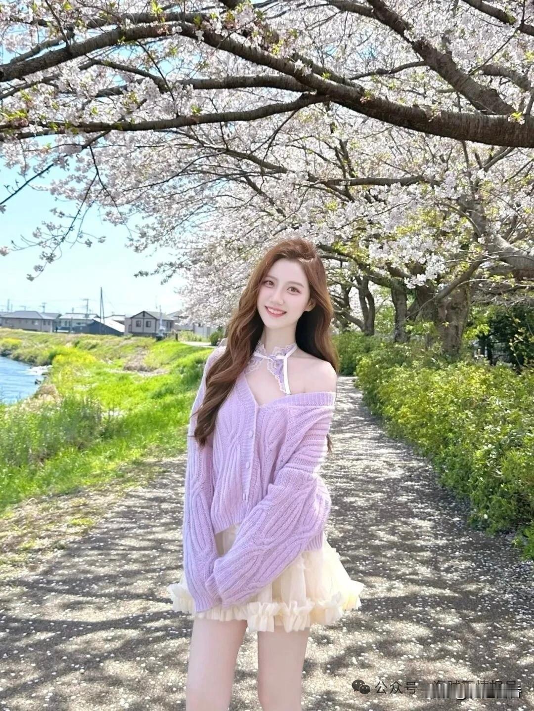 紫色开衫搭配白色百褶裙也可以美美哒!