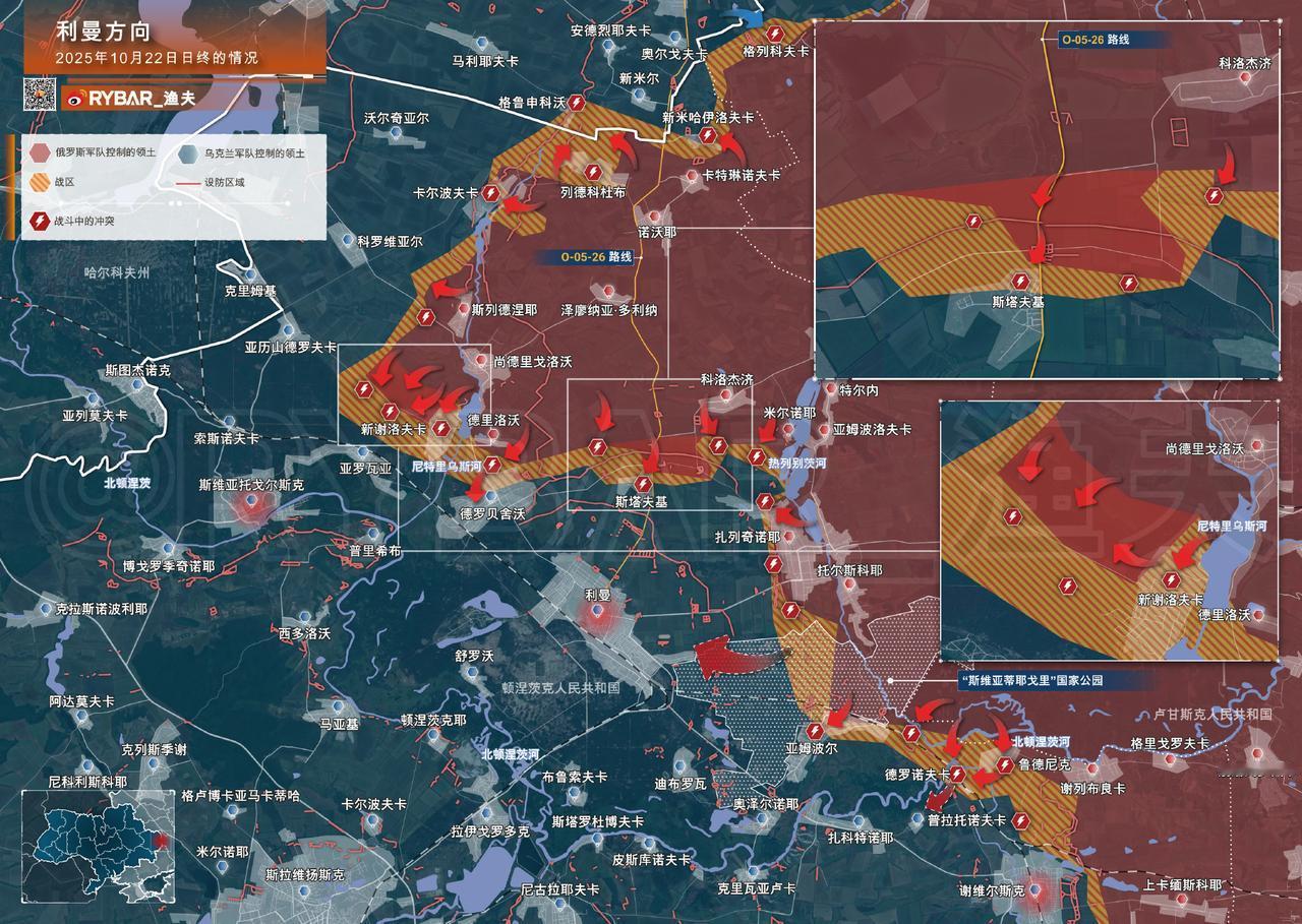 在利曼方向,俄军部队继续在多条战线取得进展。新谢夫卡西侧林区已转入俄军控制,该定居点本身的争夺仍在持续,邻近的亚罗瓦亚和德罗贝舍沃接近地也正在进行交战。 在东侧战线,斯塔夫基地区的战斗仍在继续。有消息称俄军已在北部边缘建筑区取得立足点。根据我方消息源,敌军已被逐出该地北部及东北方向的数个大型支撑点。 ❗️在扎列奇诺耶以西及亚姆波尔周边地区,战况仍被"战争迷雾"笼罩。尽管存在关于俄军取得重大进展的传闻,但目前尚未得到多方证实,整体态势仍待进一步观察。 国际新闻俄军最新进展热点观点 来源:RYBAR_渔夫