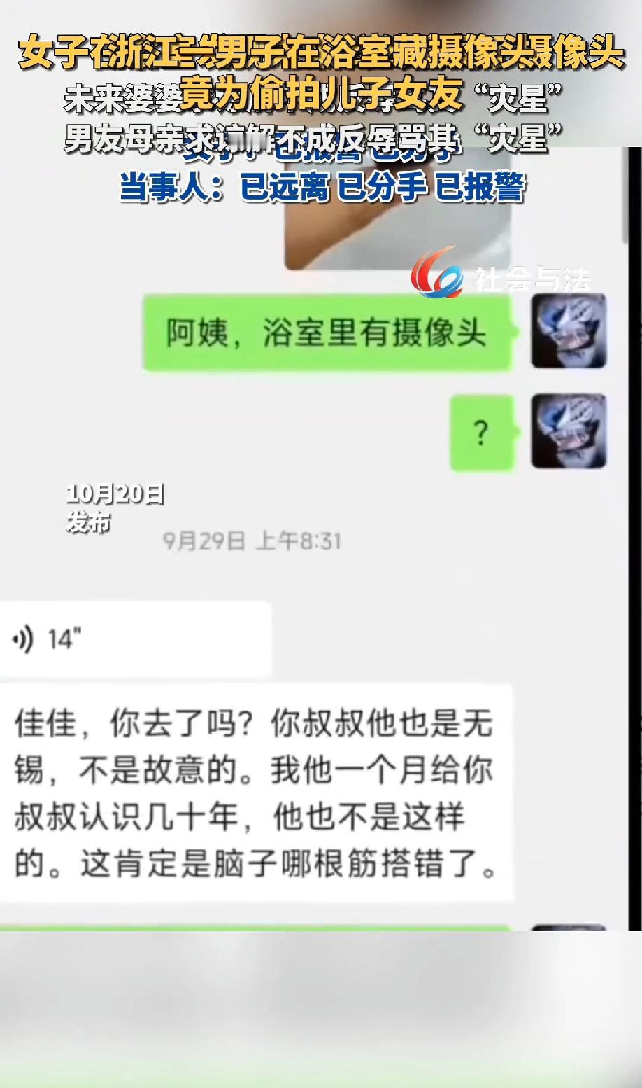 “真的是太奇葩了!”湖北一女子跨越千里奔赴浙江,和网恋奔现的男友同居,原本以为,这是幸福生活的起点,但没想到,未来公公居然在浴室放了摄像头,连续六天偷拍她,全身上下被看遍,如果不是她无意中发现,还不知道要偷拍到什么时候。女子将这件事告诉未来婆婆,可让她万万没想到的是,未来婆婆非但不站在她这边,还大骂她是灾星,祸害了她家。 一天晚上,女子洗完澡后,想要敷一张面膜,就伸手去置物架上拿,但无意间她摸到了一个发热的东西,拿起来一看是一个剃须刀。 奇怪的是,剃须刀没有人用,却是热的,女子顿时察觉不对劲,于是就仔细研究起来,没想到这一研究让女子瞬间全身冰凉,这哪里是剃须刀,分明就是一个摄像头,而且镜头还对准浴室,指示灯都还在亮着。 女子思来想去,瞬间意识到是未来公公在偷拍她。慌乱中,女子第一时间找到未来婆婆询问,想着都是女性,未来婆婆肯定会维护自己,为自己做主,可是未来婆婆的反应却让女子十分愤怒。 未来婆婆不仅觉得这件事没什么,还一个劲的替未来公公开脱,说什么只是一时糊涂,不知道从哪里捡来的东西,随手就放在浴室了。还劝女子不要把事情闹大,姑娘家名声很重要,忍一忍就过去了。轻描淡写的语气,让女子气得浑身发抖,当即就跟未来婆婆理论起来,没想到婆婆被逼急了瞬间露出真面目,大骂女子是灾星,来祸害她家。 面对婆婆的威胁,女子没有妥协,立刻就报了警。警方调取了设备记录后发现,这个摄像头早在六天前就已经装好了,并且在这六天里,未来公公曾两次进入浴室操作设备,明显就是有预谋的偷拍。 面对摆在眼前的证据,未来公公非但没有意识到自己行为的不端,而且还在拼命狡辩,不知道哪说摄像头。看到这丑恶的嘴脸,女子只觉得恶心,女子都不敢细想这六天里自己的隐私被看了多少遍。最终,未来公公因偷拍他人隐私,被依法执行行政拘留4天。 经过这件事,女子也算看清楚了这家人的嘴脸,彻底死心,果断跟男友分手,收拾好自己的东西离开了。 这件事引发热议后,有网友表示:有些家庭,看起来很和睦,很温暖,但其实往往藏着不为人知的龌龊心思。 最让人心寒的是,同为女性,未来婆婆居然还在维护自己的丈夫,丝毫不考虑女子的感受,这样的人家,真的是毫无道德底线可言,要是女子真的嫁进去,未来还不知道会发生什么,到时候连哭的地方都没有。 人与人之间,家人也好,朋友也罢,关系再亲密无间,也要有边界感,不要轻易越界,尊重别人的隐私,是做人最基本的道德底线。