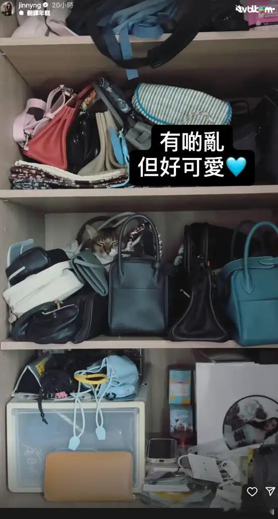 吳若希留言表示:「有啲亂 但好可愛。」片中可見,貓貓藏身的櫃子上下四層中,有起碼三層堆滿了各式各款的名牌包包,價格不菲,劇裏劇外同樣富貴!其實吳若希過往亦晒出過不少Hermès手袋,去年生日就豪買30萬手袋寵自己,她寫道:「獎勵自己今年那麼勤力,買了人生第一個藍盒子。」還有吳若希入手的藍色Hermès小背囊等等,是圈中名副其實的小富婆。