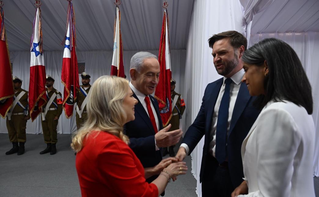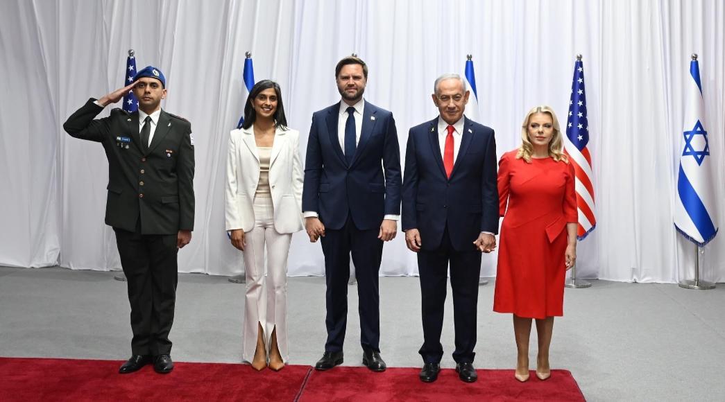 内塔尼亚胡夫人接待万斯夫妇!10月22日万斯夫妇到访以色列,内塔尼亚胡夫人盛装接待贵客,红裙金发造型亮相,富态又优雅,内塔尼亚胡也系着红色领带,夫妻俩默契有爱! 萨拉·内塔尼亚胡一看就是很旺夫的女人,尽管青春不再,但长得富态身材丰腴,选择色彩鲜艳的红裙接待乌莎夫人,身材不占优势,却抢尽了风头。 反观万斯夫人,一袭白色职业装知性干练,身材也不错,就是没有靓丽红惹眼,还有他们一起喝下午茶,坐在餐桌前的萨拉夫人真出众!