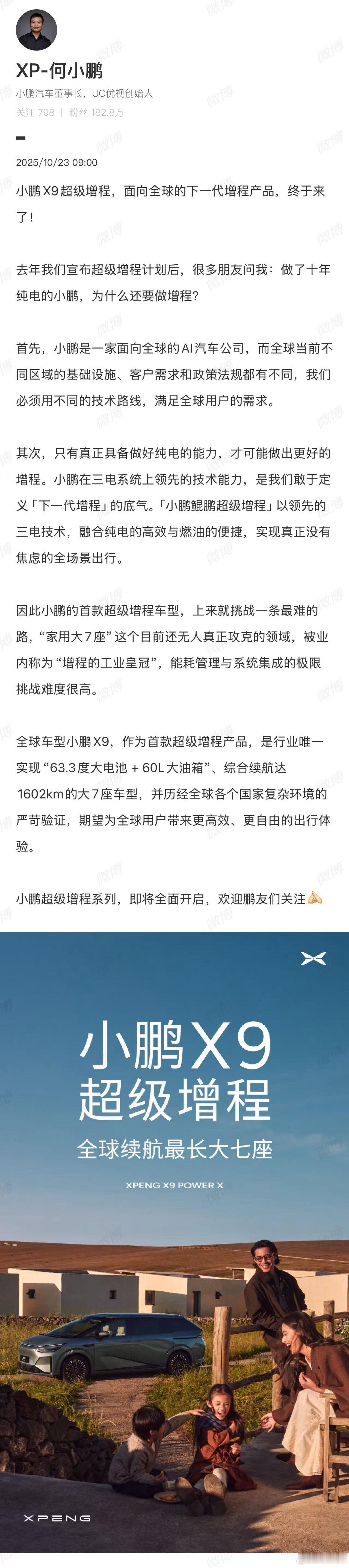 大v聊车1602公里续航的小鹏x9超级增程来了