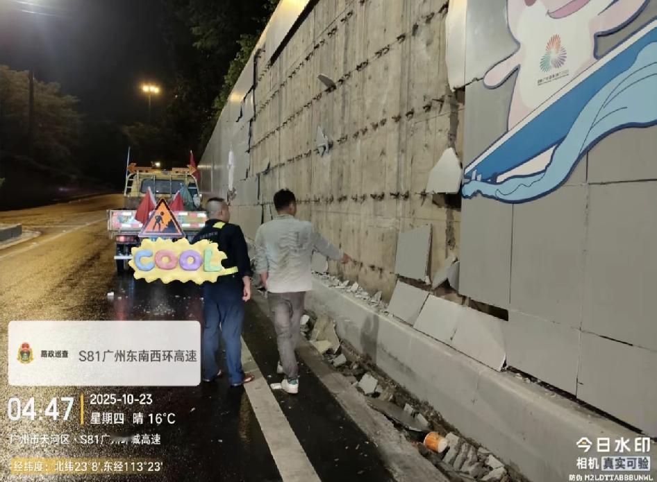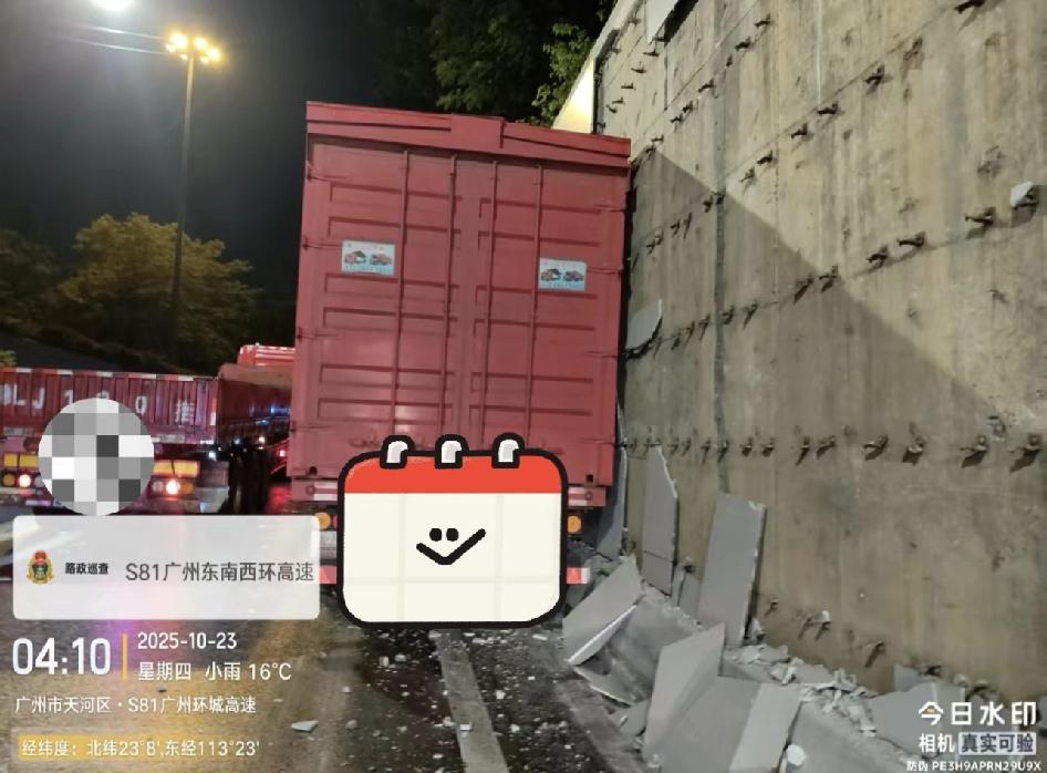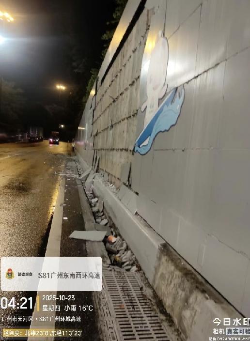 全运会保障路线刚完工,又被大货车撞坏了😭 广州南行出车陂路匝道豫半挂车自撞损坏1.干挂饰面石0.6*0.8*204共97.92平方米,2.干挂饰面石0.6*0.4*34共8.16平方米。大货车最恐怖了,在快速路上横冲直撞。