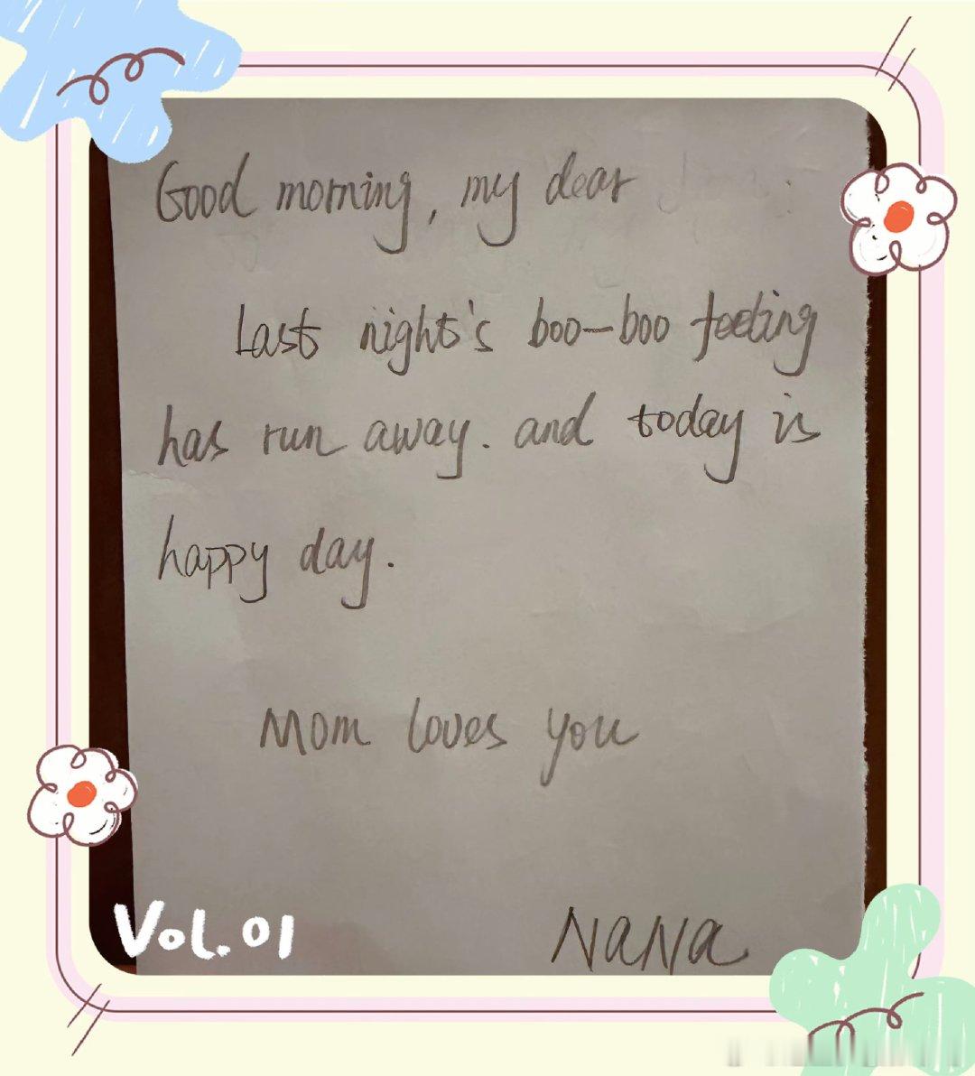谢娜给跳跳俏俏写了早安小卡片谢娜睡前给跳跳俏俏写了卡片谢娜女儿喊姐妹来看戏精妈妈演戏太可爱了,谢娜哄完女儿还写双语卡片给女儿,跳跳俏俏每天醒来看到这样的早安卡,一天的心情都要起飞了吧~