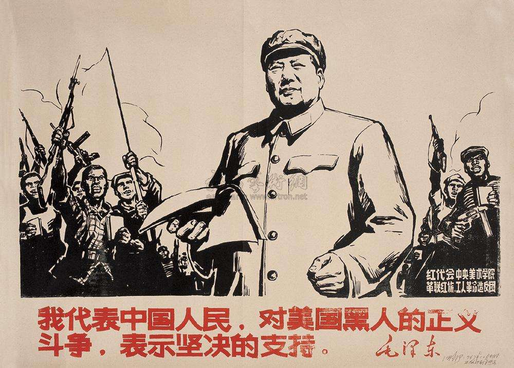 老版宣传画:我代表中国人民,对美国黑人的正义斗争,表示坚决的支持 ——毛泽东