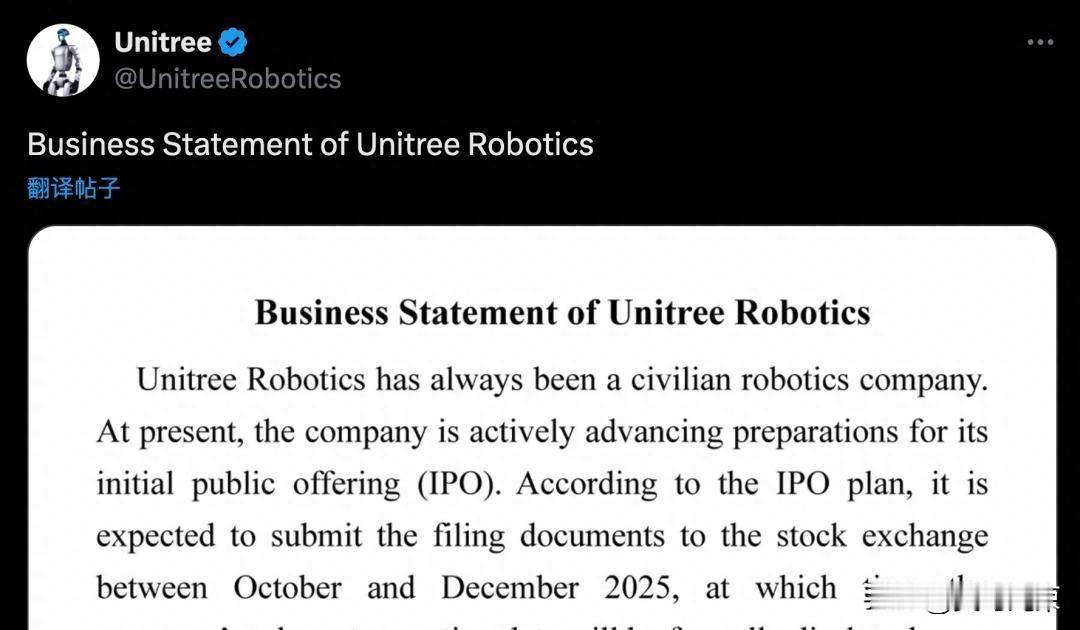 机器人时代来临! 宇树科技上市路,机器人新篇章开启了 宇树科技,它要上市了,真快啊,王兴兴创立它,2016年,搞四足机器人,一开始就一个人,大家都在看,谁能想到呢,2017年,有了Laikago,后来啥AlienGo,Go1,2023年,人形机器人H1也来了,G1也来了,发展真快啊。 股份制改革,今年五月,六月注册资本增加了,C轮融资也完成了,估值一百二十亿,浙江证监局也备案了,七月,明年十月或十二月,要交IPO文件了,真不容易。 四足机器人卖得最多,占百分之六十五,人形机器人百分之三十,零部件百分之五,四足机器人,科研教育,消费多,工业少,人形机器人,完全是科研和消费,一年营收,破十亿了,王兴兴说的,达沃斯论坛上。 中国机器人领域,宇树科技,算是最受期待的,融了好几轮,中国移动,腾讯阿里,都有投资,从2020年开始,一直在赚钱,不容易啊,低成本高性能,抢占市场,技术驱动,自主研发,场景化打开市场,模式不错,或许能推动中国机器人行业发展,四足人形,从追赶到引领,挺厉害的,有人说,它要和智元机器人,争第一股呢,这公司真厉害啊,王兴兴本科浙江理工,硕士上海大学,辍学创业,一个人开始,现在行业领军人物了,个人的努力,时代的机会,都重要啊。