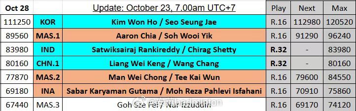 国羽总资格席位已全部锁定【9席】,截止目前男双的总决赛竞争依旧是最激烈的!