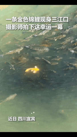“上人民日报了!”四川宜宾,一男子正在拍摄三江口,突然水里出现一抹金光,他一开始以为是太阳反光,结果,镜头拉近后 ,才发现是一条金色锦鲤现身三江口,他立马拍下这幸运一幕,接好运!网友:遇见锦鲤,见者好运! 视频中,在一群黑鱼里藏着条半尺长的金锦鲤,鳞片亮得像飘在江里的小金箔,慢悠悠游了五六分钟,最后跟着水流往江中心的渔船底下钻,再也没露面。 其实这锦鲤大概率是别人放生的,但能在这儿活得这么精神,不正好说明三江口水质是真的变好了? 以前总听人说这儿渔船多、水脏,现在鱼群都能成群结队,连锦鲤都留得住,环境变好这事儿真不是吹的。 大伙疯传“见者好运”,哪儿是信鱼能带来好运,不过是借着这抹金光,把对日子的盼头摆出来罢了。 就像过年贴年画、端午挂艾草,图的就是这份热热闹闹的好彩头。
