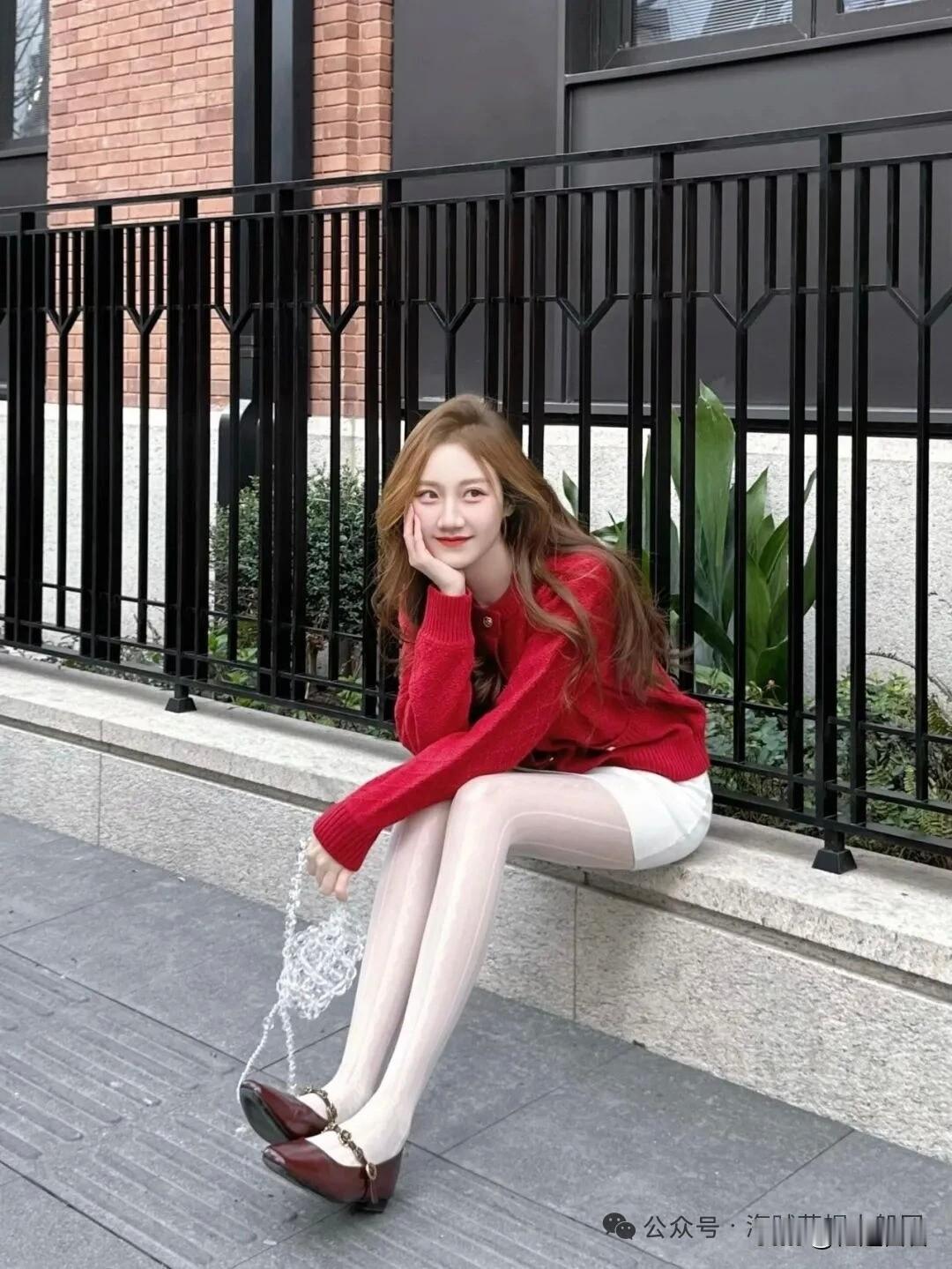 红色毛衫搭配白色超短裙,性感又甜美!