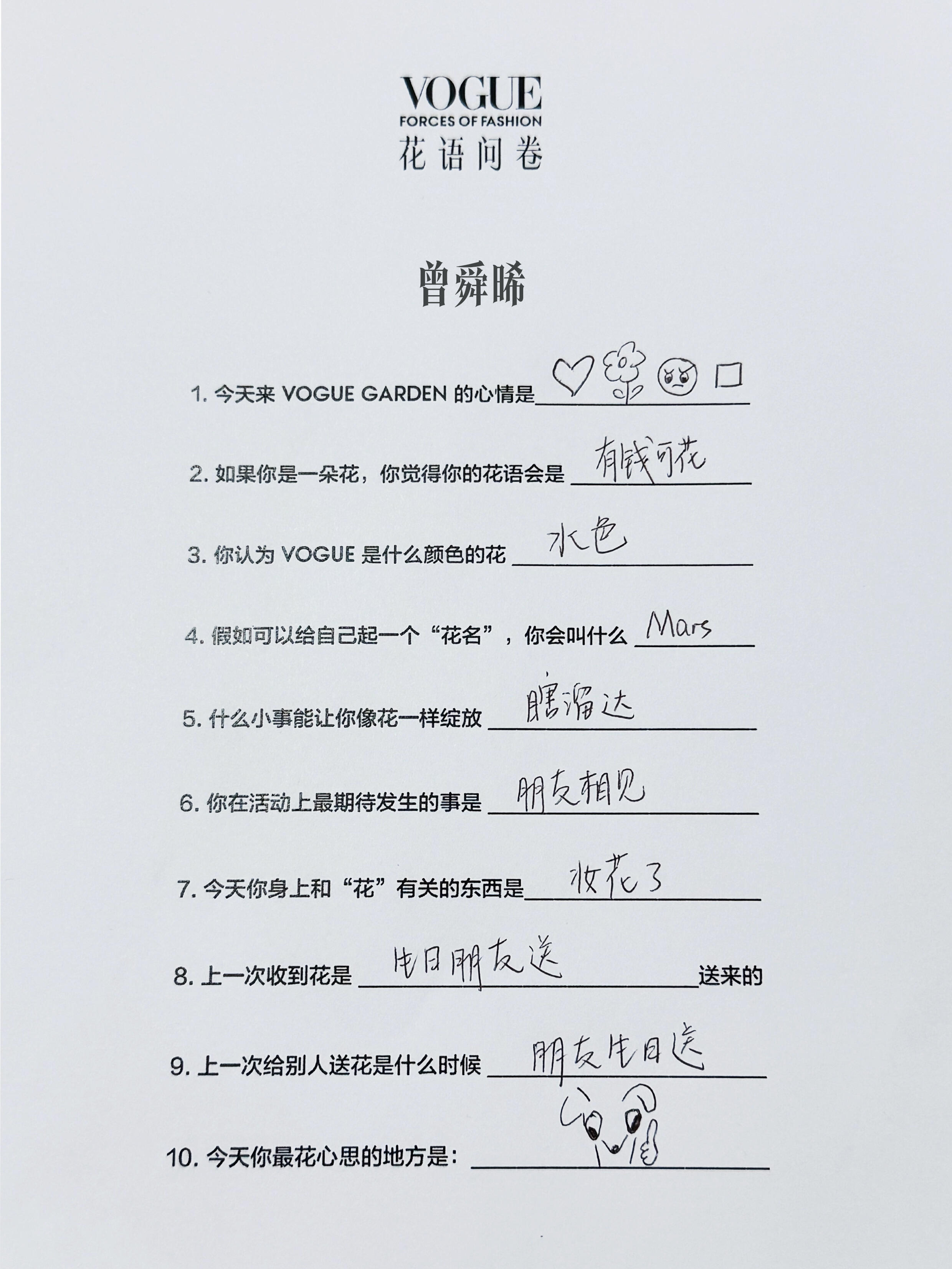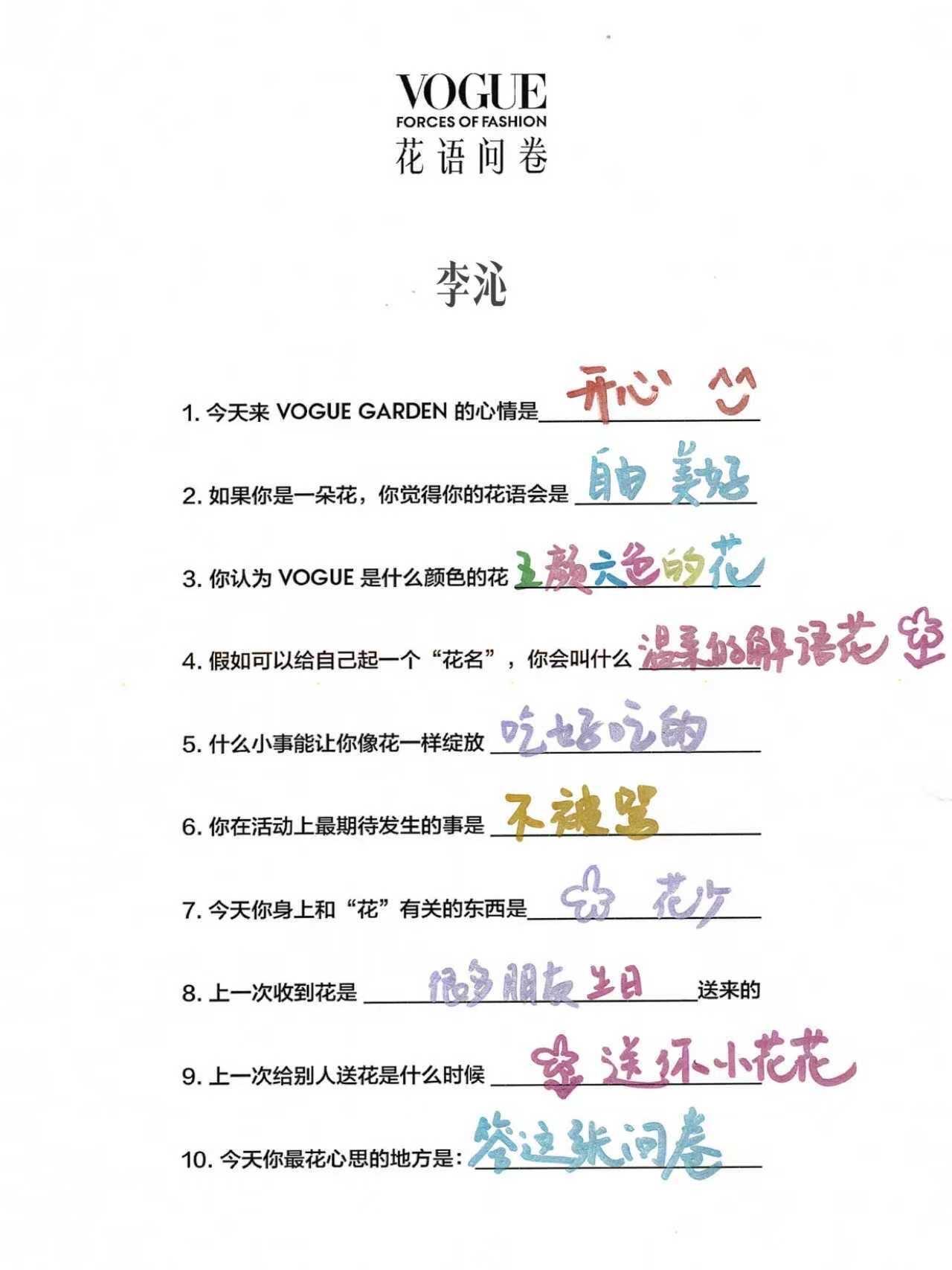 宋雨琦,李沁,金晨,龚俊,曾舜晞,娜扎,马思纯,钟丽缇,张凌赫的VOGUE问卷[送花花]