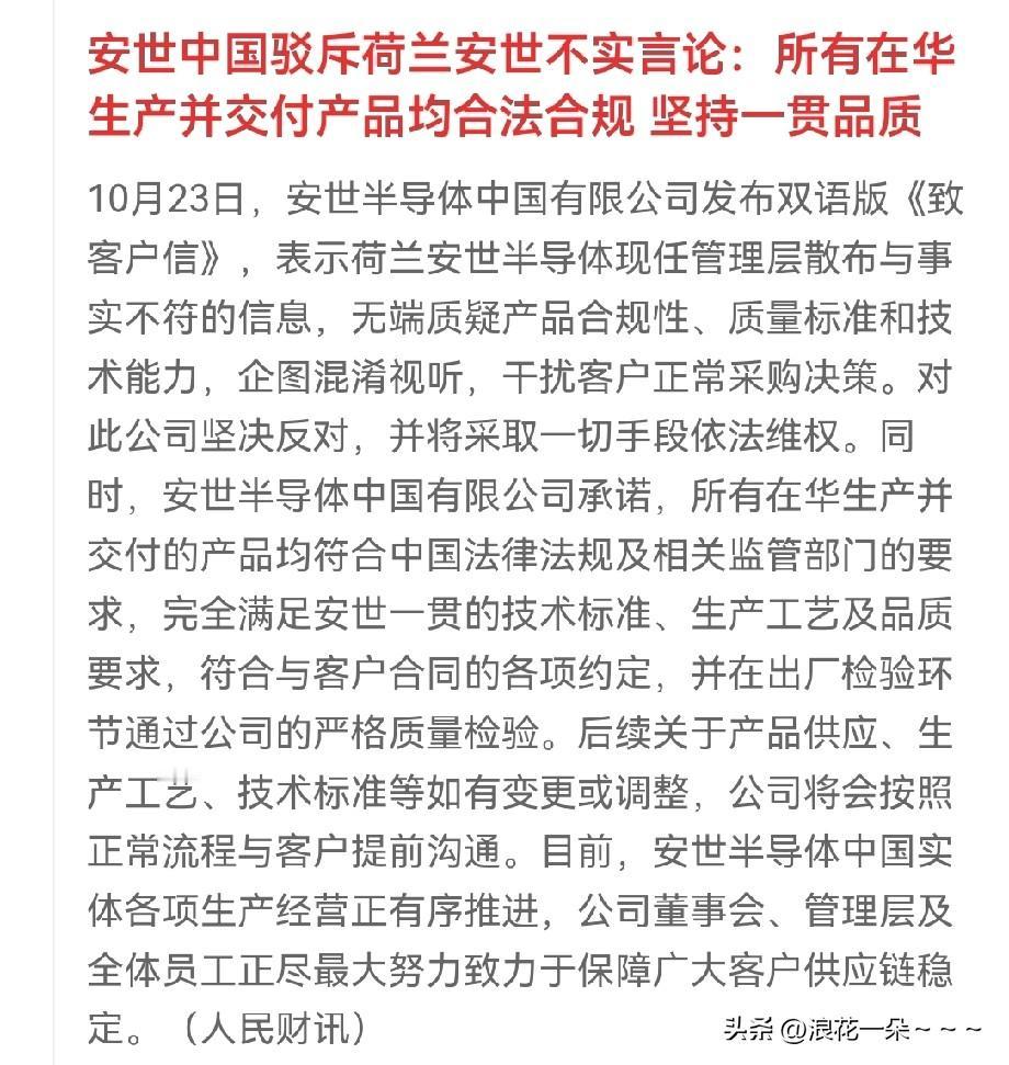 死鸭子嘴硬? 荷兰安世半导体管理层还在散布与事实不符的信息?好在,安世半导体中国