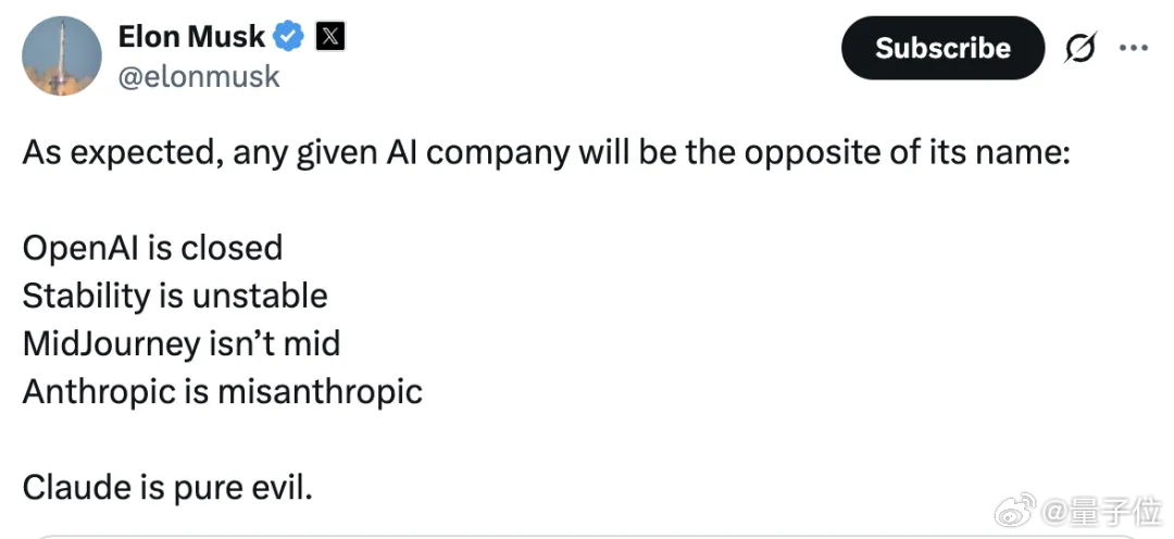 马斯克在𝕏上直接锐评Claude「邪恶透顶」: