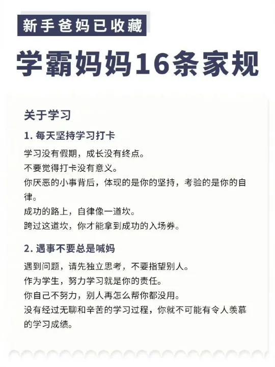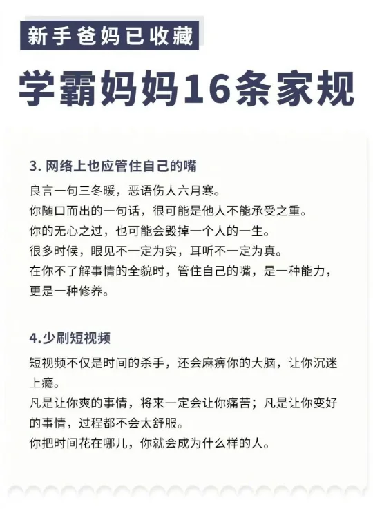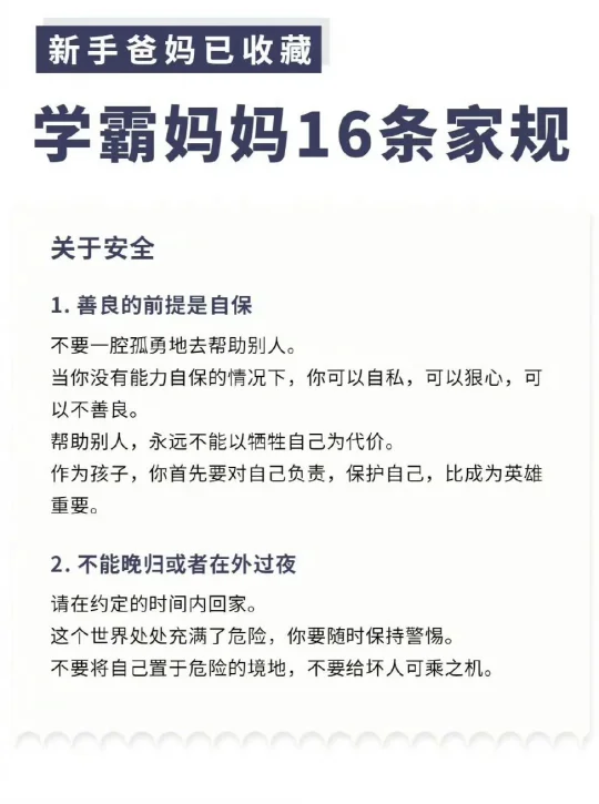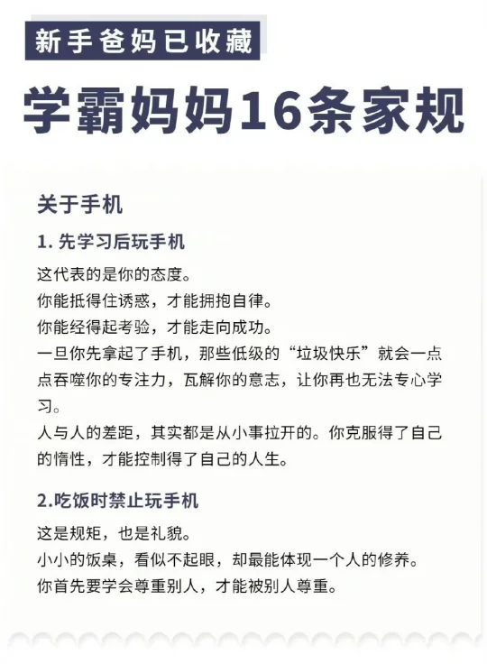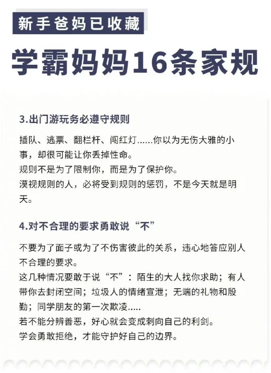 关于学习,关于手机,关于安全三个方面,可以参考,给孩子立这样的规矩。