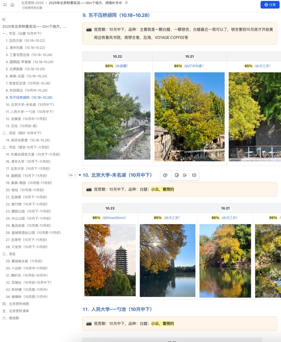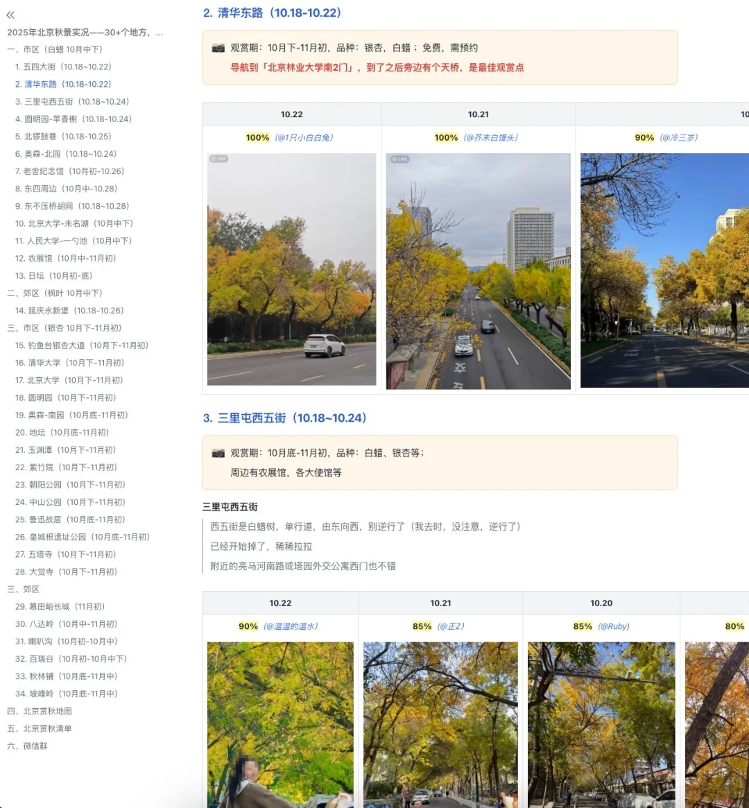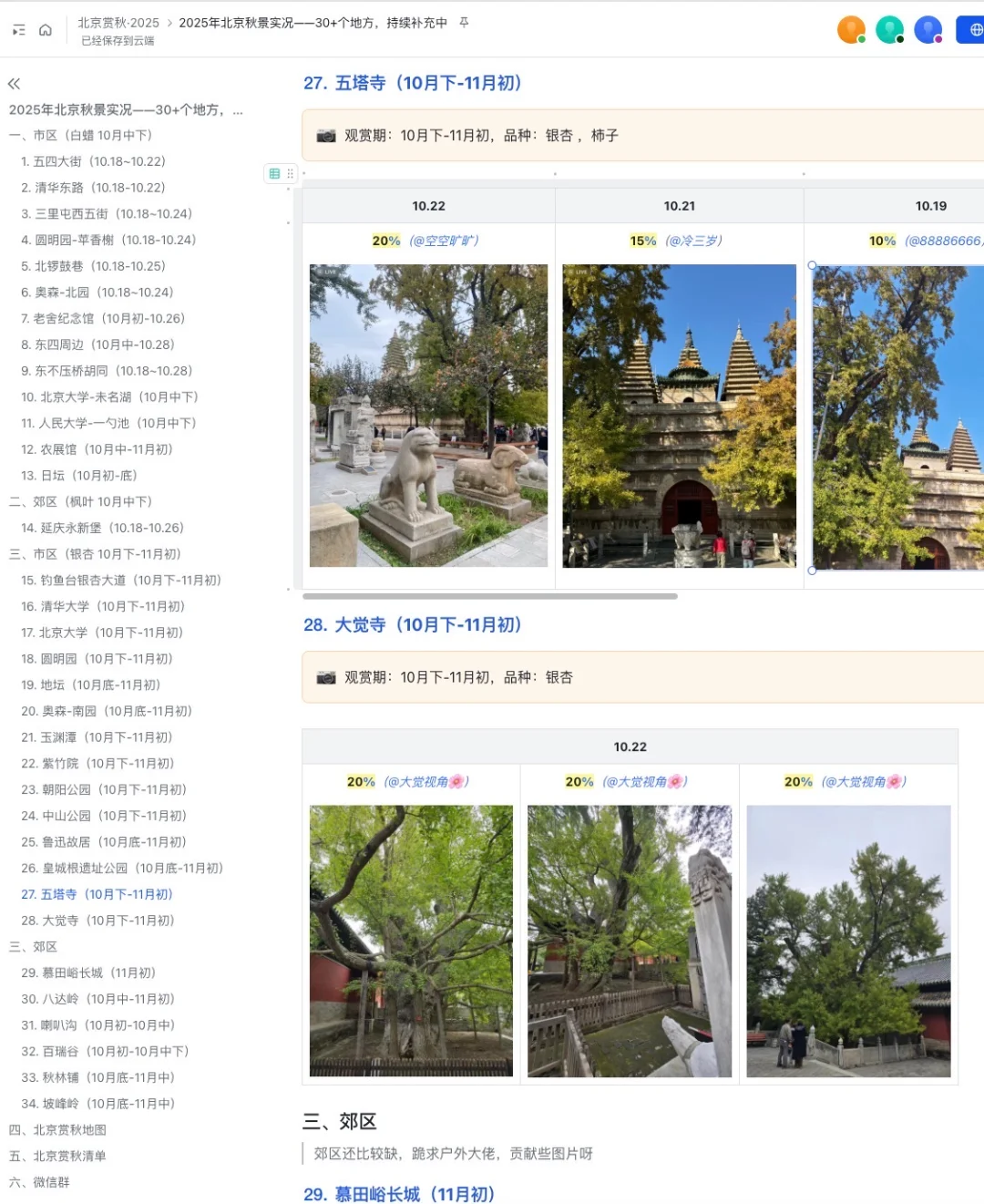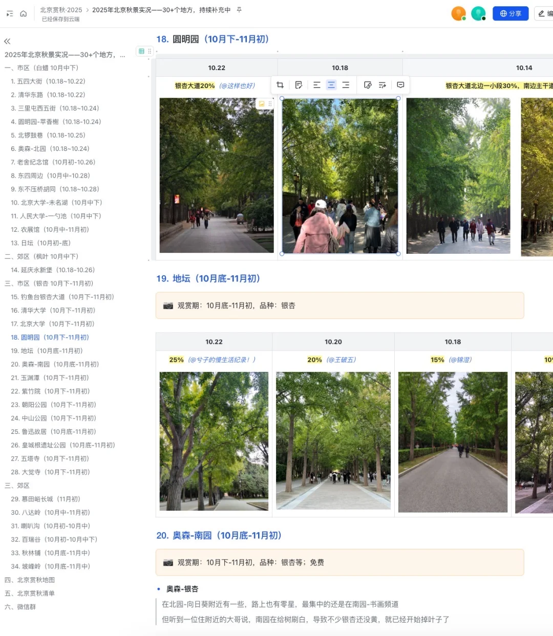 [拔草R][拔草R][拔草R]PS.文档里也更新了中山公园,地坛,朝阳公园,清华北大,圆明园,奥森,五塔寺,大觉寺等银杏情况,都比较绿。