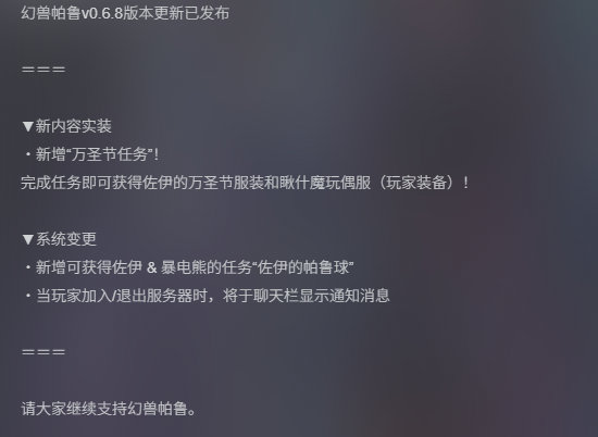 《幻兽帕鲁》0.6.8版本更新已发布,推出了以下内容: