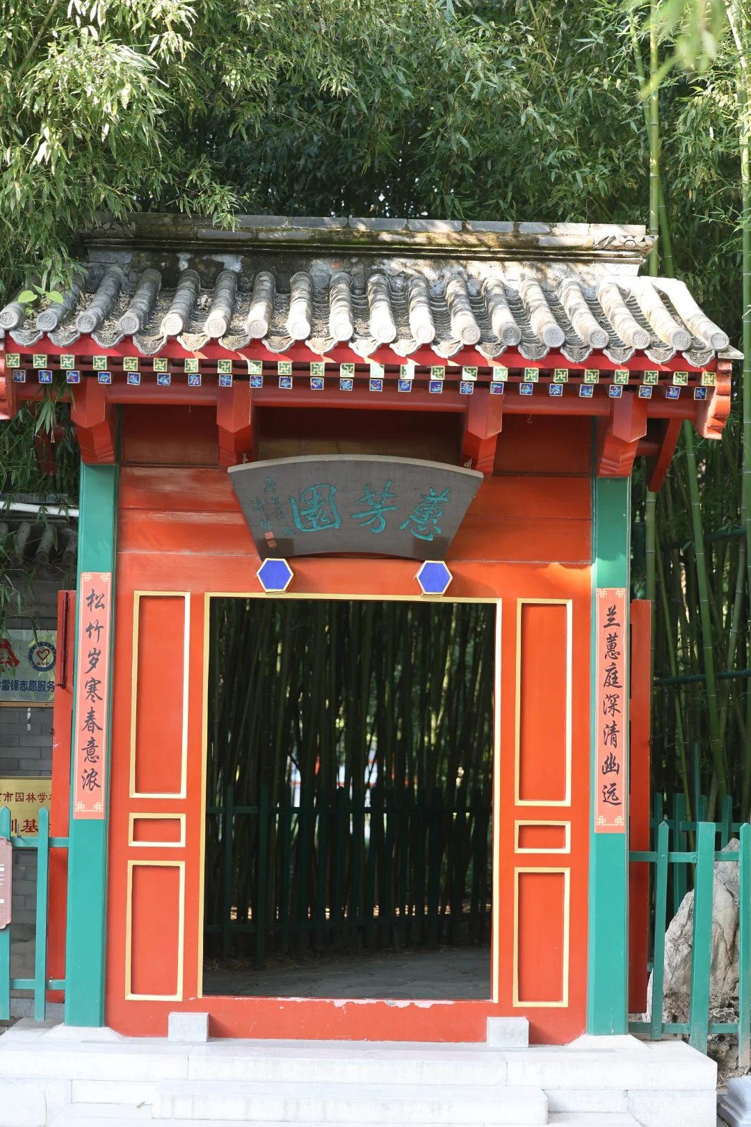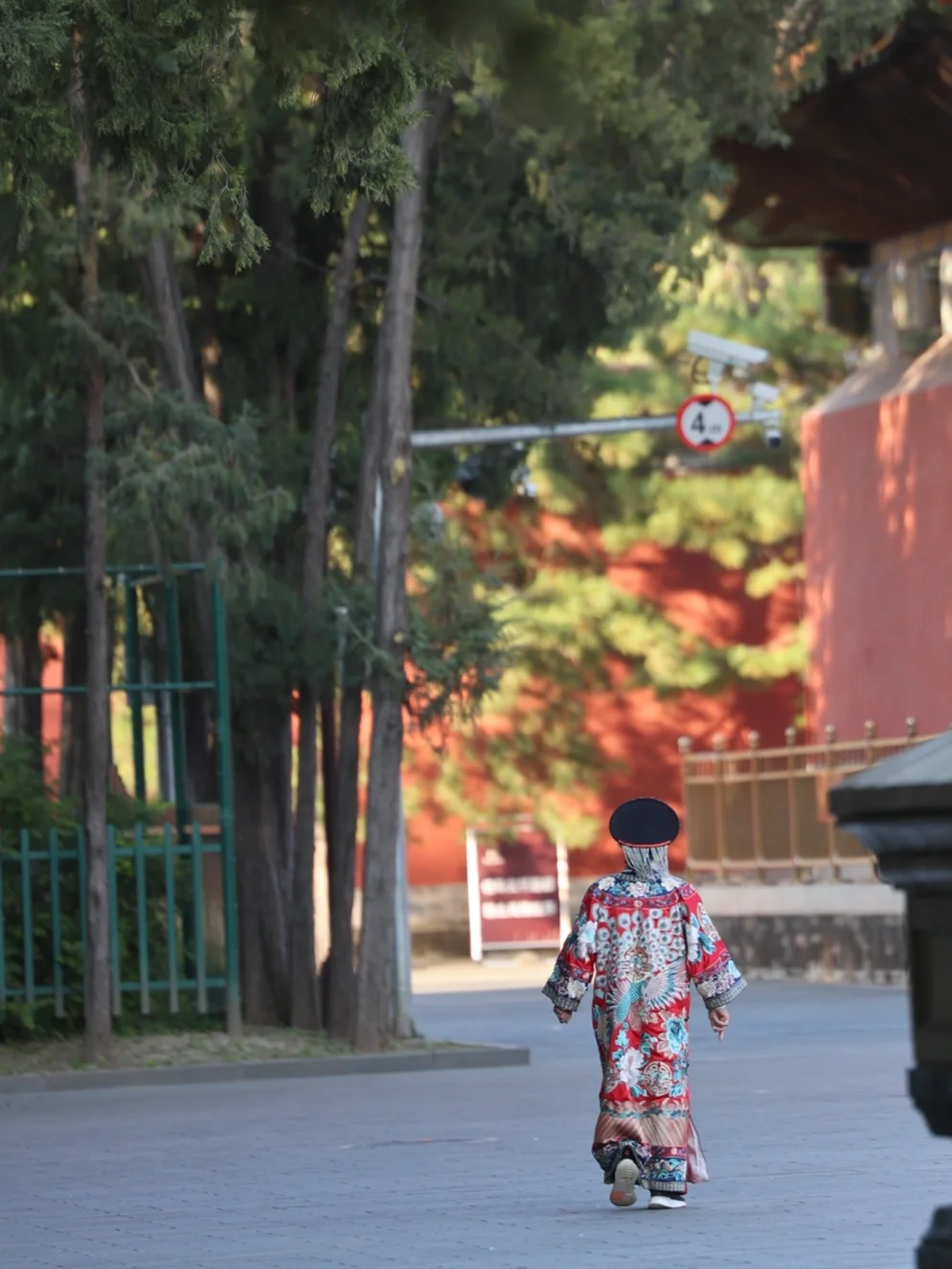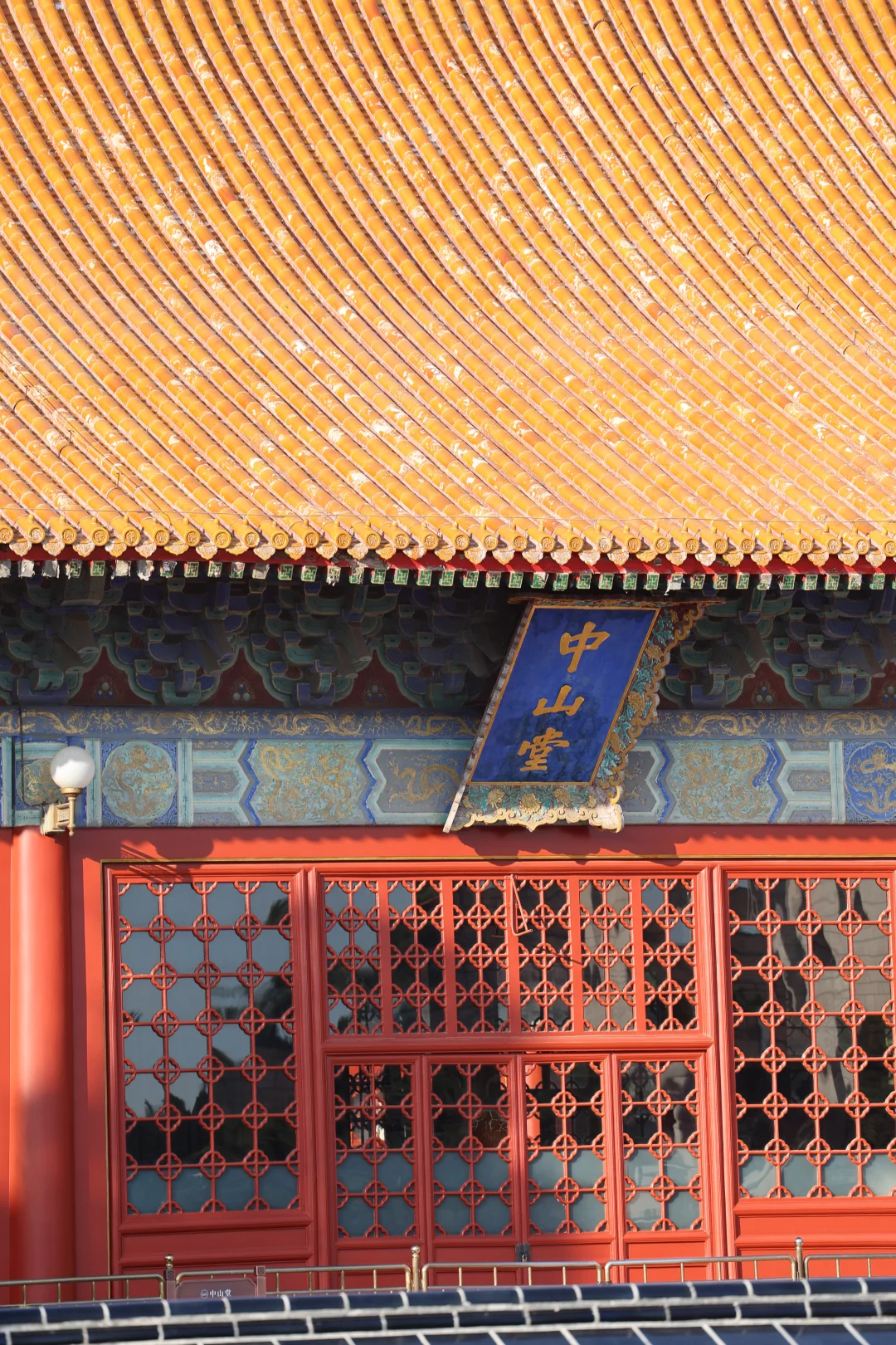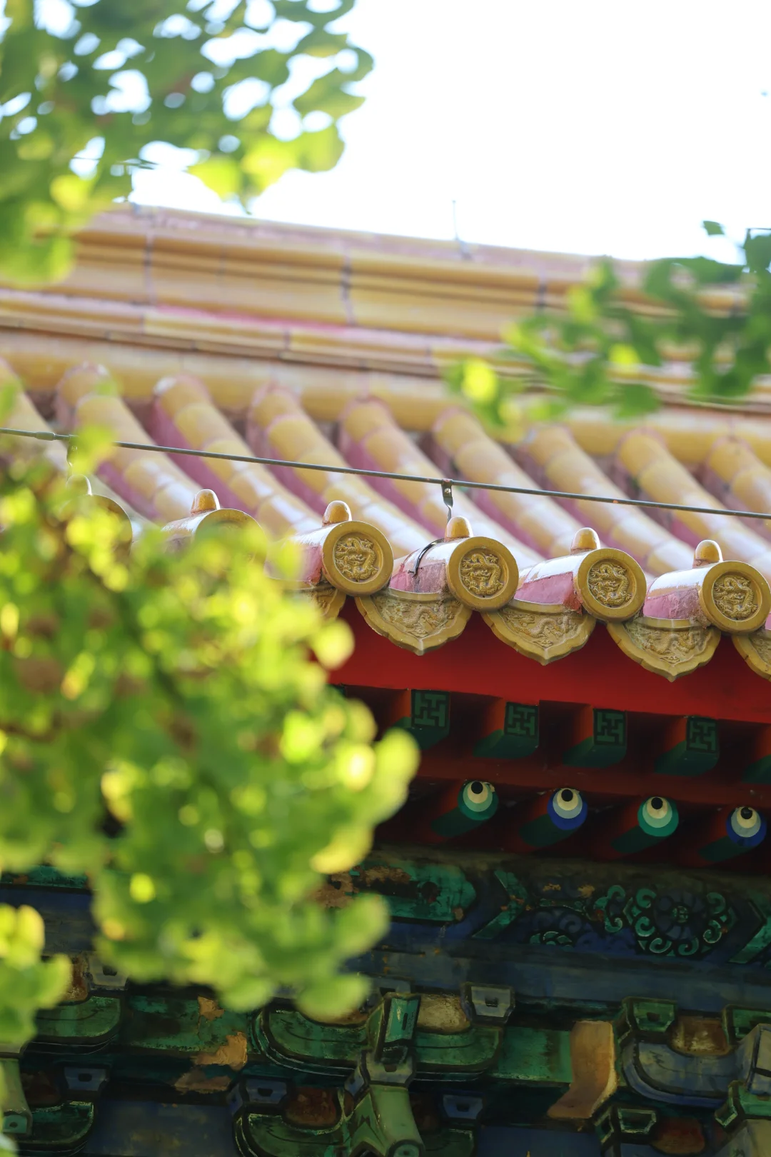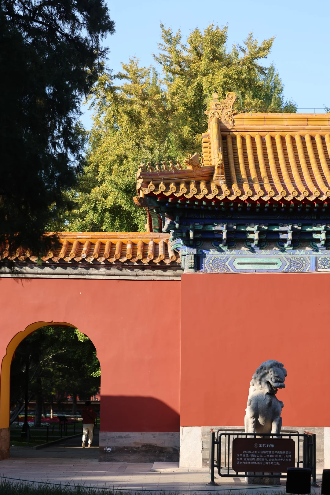 在阳光下,银杏配红墙/门,还可以
