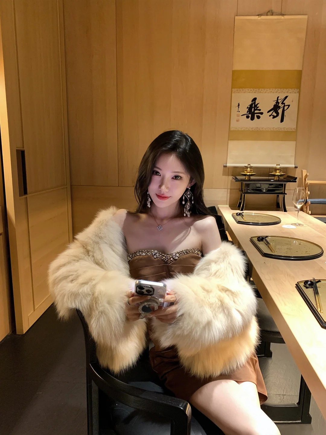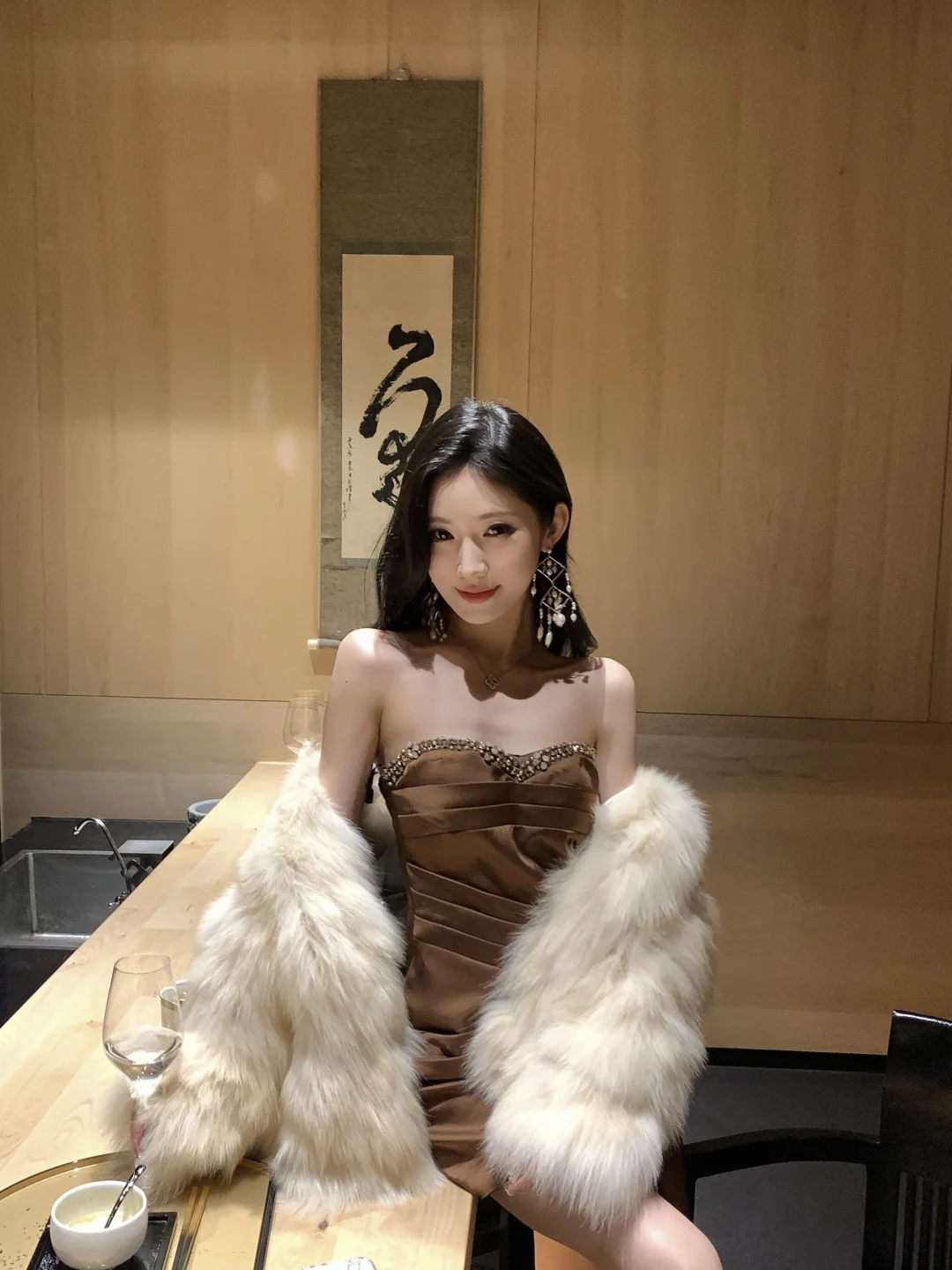 许佳琪壁纸:金红色抹胸裙,尽显婀娜姿态