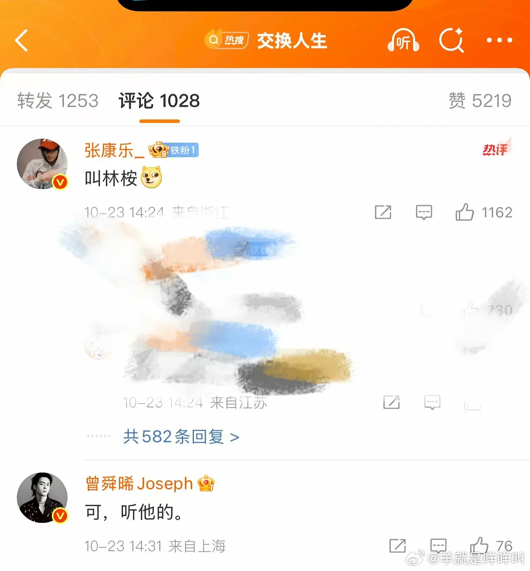 张萌针对剧集《交换人生》中曾舜晞饰演的郑好,询问是否要换个名字,曾舜晞和张康乐征求建议。张康乐建议叫“林桉”,曾舜晞回复“可,听他的”