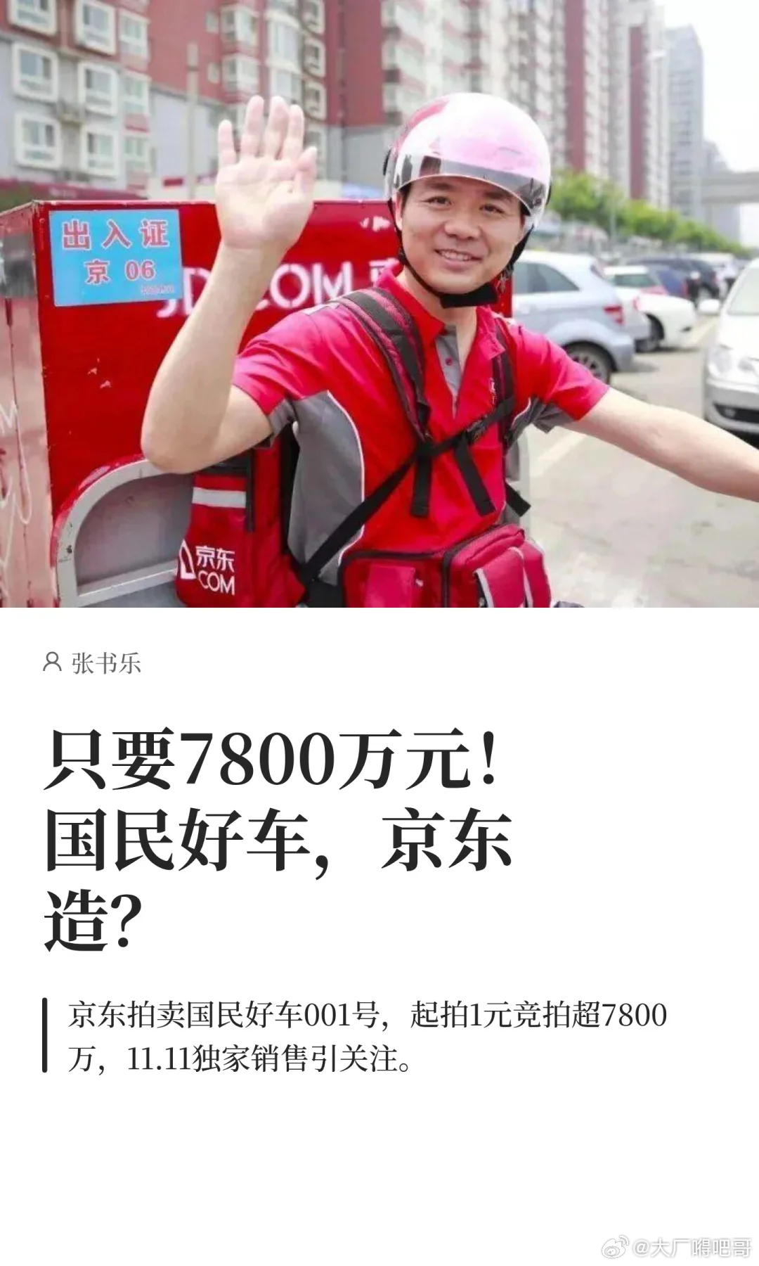 只要7800万元!国民好车,京东造?京东造车,这个造,是造势的造,不是制造的造。