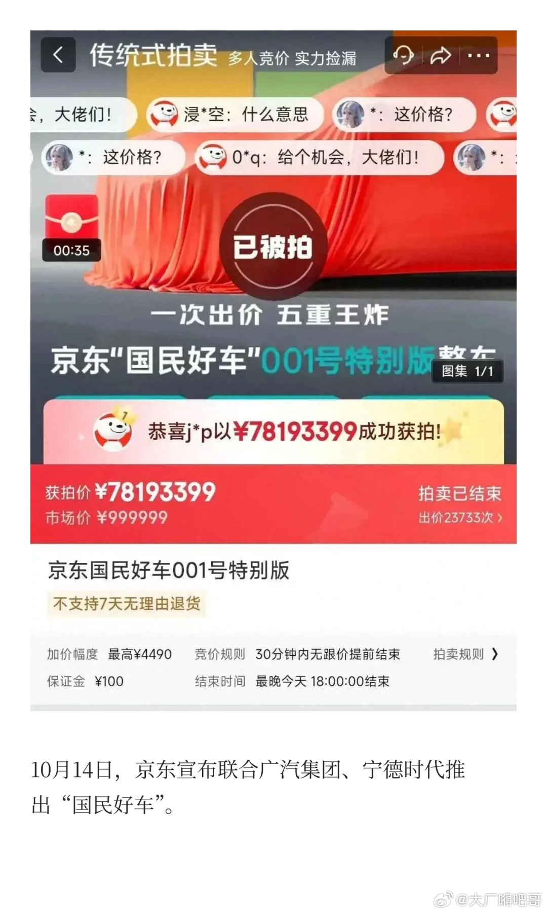 只要7800万元!国民好车,京东造?