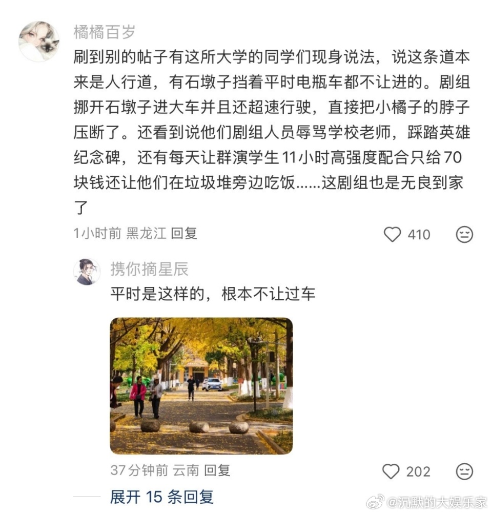 很多云大的学生出来爆.料,看了一圈,这个剧组不是第一次这样,类似的事情很多,总之就是对人、对动物都很不友好的感觉。且不说是漠.视小动物生命,在校园内,尤其是老校区行人众多的道路上超.速行驶,本身就是安.全.意.识不高,不顾他人安.危的行为。