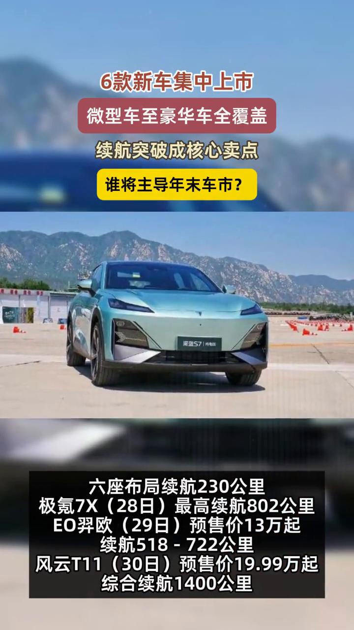 6款新车集中上市,微型车至豪华车全覆盖,谁将主导年末车市? 2025年10月21日至30日,埃尚A100C(21日)为3万元级微型电动车,续航220公里。凯迪拉克CT6(22日)中期改款,精简至三款2.0T车型。腾势N8L(28日)预售价31.98万起,六座布局续航230公里。极氪7X(28日)最高续航802公里。EO羿欧(29日)预售价13万起,续航518-722公里。风云T11(30日)预售价19.99万起,综合续航1400公里。