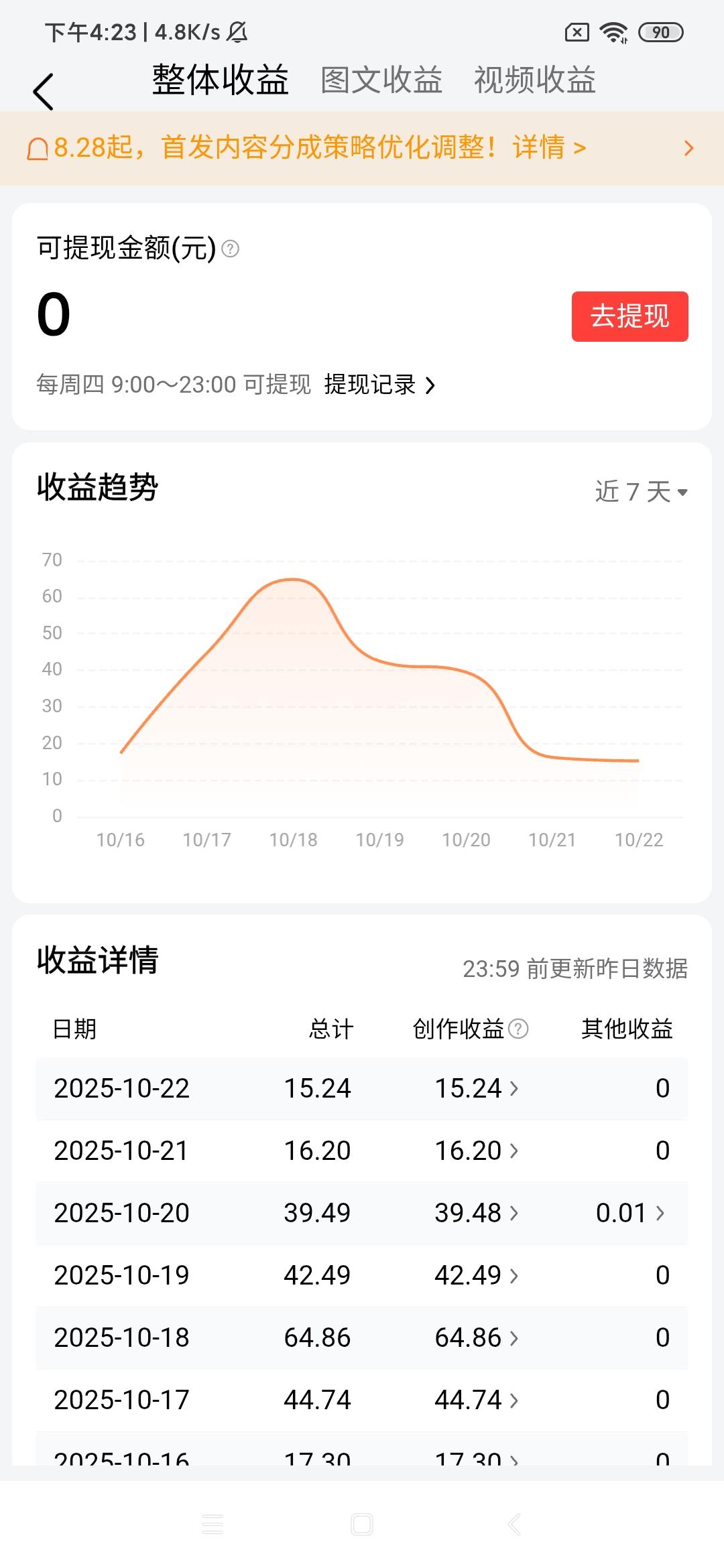 兔撕机:很多人觉得自媒体赚钱,我可以负责任的说,真的赚! 但是这属于已经做成功的账号,至少账号得有几十万粉丝才能达到这种效果,像小编这种账号,一天也就几十块钱的水平。 其实小博主也能挣到钱的,特别是那些发视频的博主,反正参加各种活动,偶尔有东西送送。 一年也能挣十几个,但是确实也比较累,但是比进厂打工还是强一点。但是像小编这种图文账号就不同了,主要还是看浏览量,1万个浏览量能有个三块钱吧。 各位是怎么看的?欢迎评论区留言。