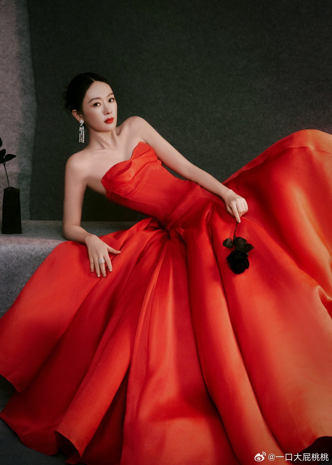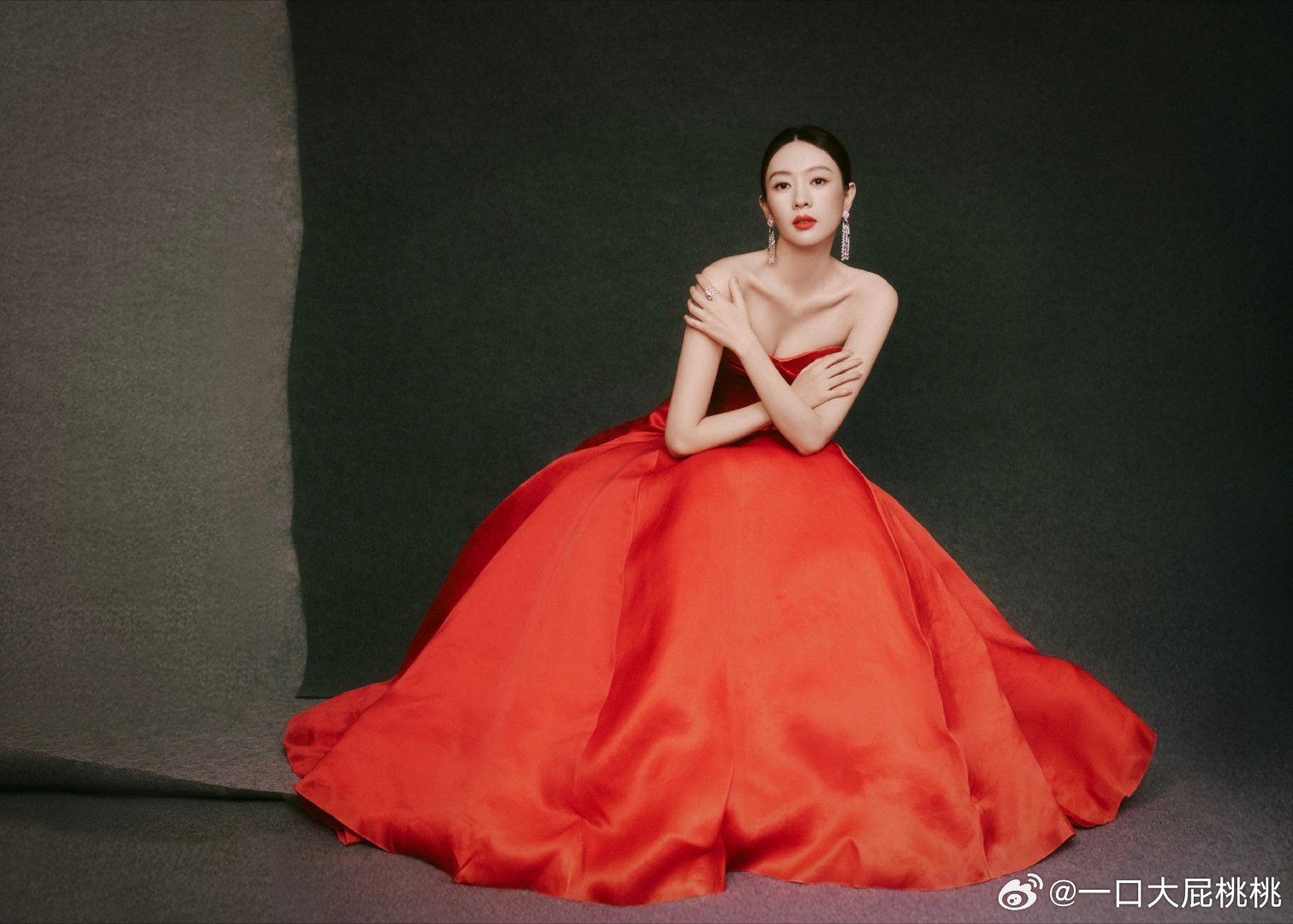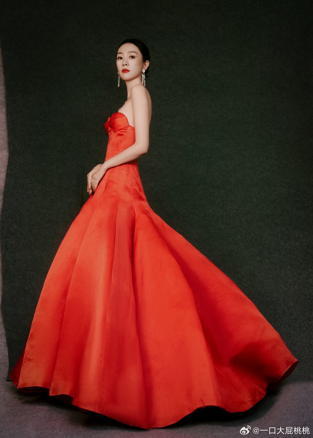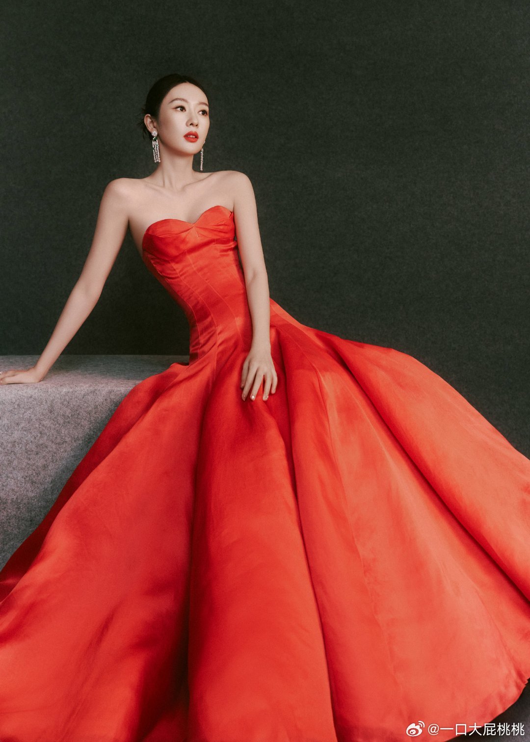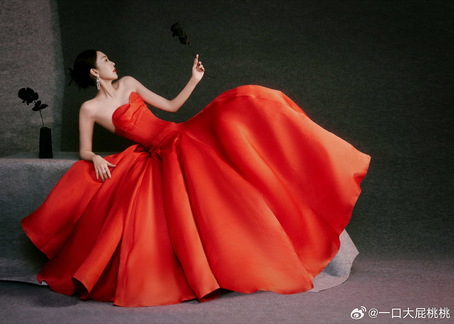 童瑶上身Christian Dior by Raf Simons 2012秋冬高级定制系列大红色礼服亮相💋
