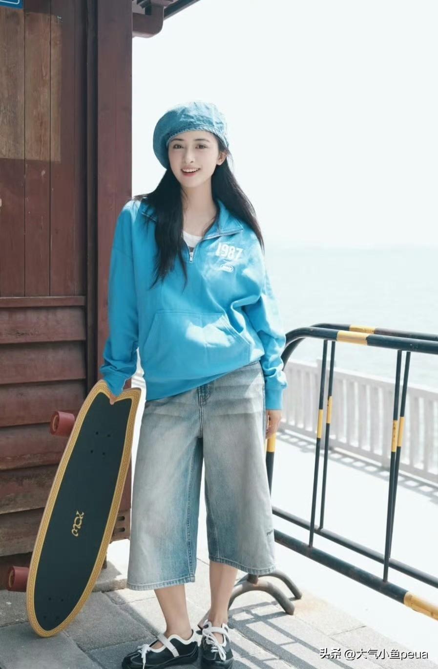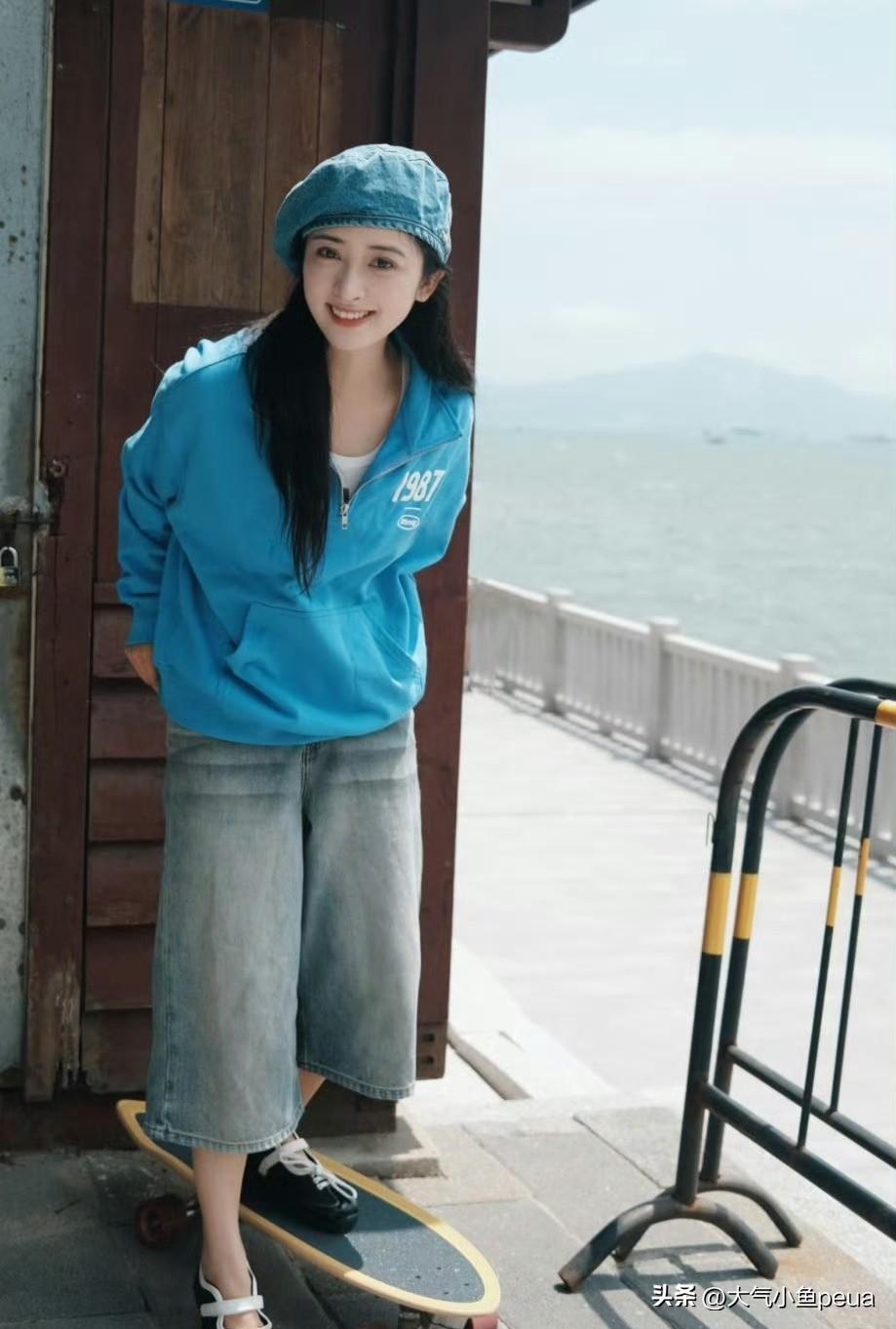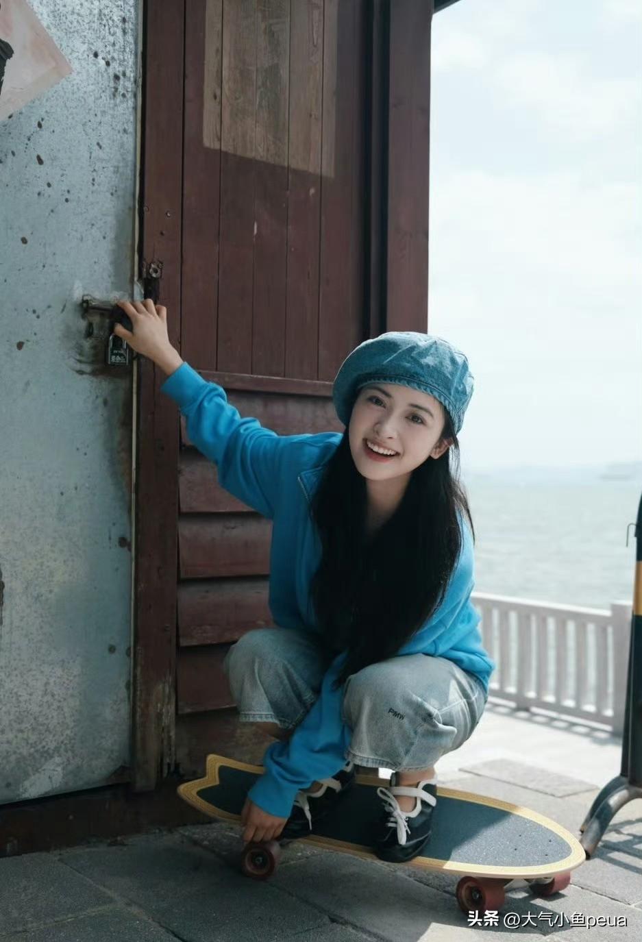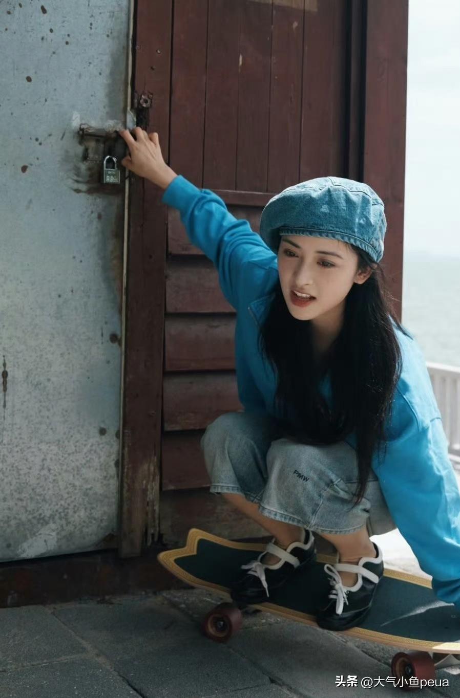 沈月这组滑板写真也太出片了吧!她把滑板这种街头风和自身清新的气质结合得特别好,完全没有违和感。 不管是蹲在板边的俏皮,还是滑行时的笑容,都特别自然灵动,就像隔壁班一起玩的可爱同学,好看的了! 构图和色调也很有日系写真的感觉,满满的少年感和生活气,看得人心情都变好了! 她真的好会找风格,每次日常照都美得很舒服。
