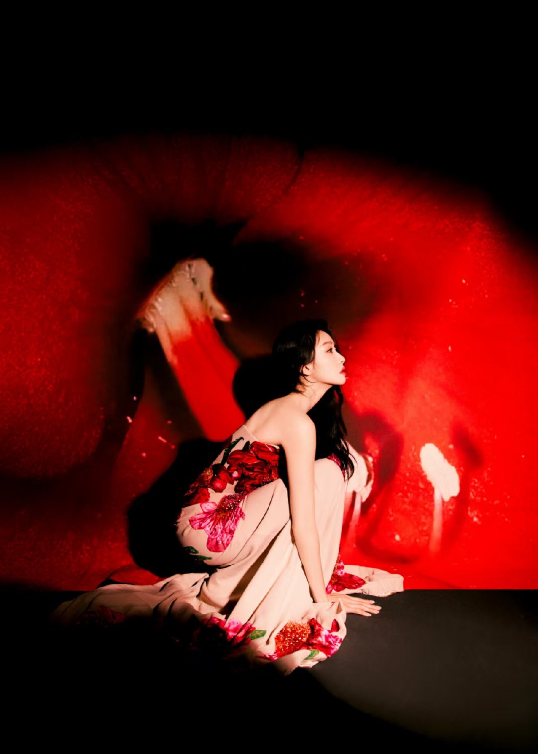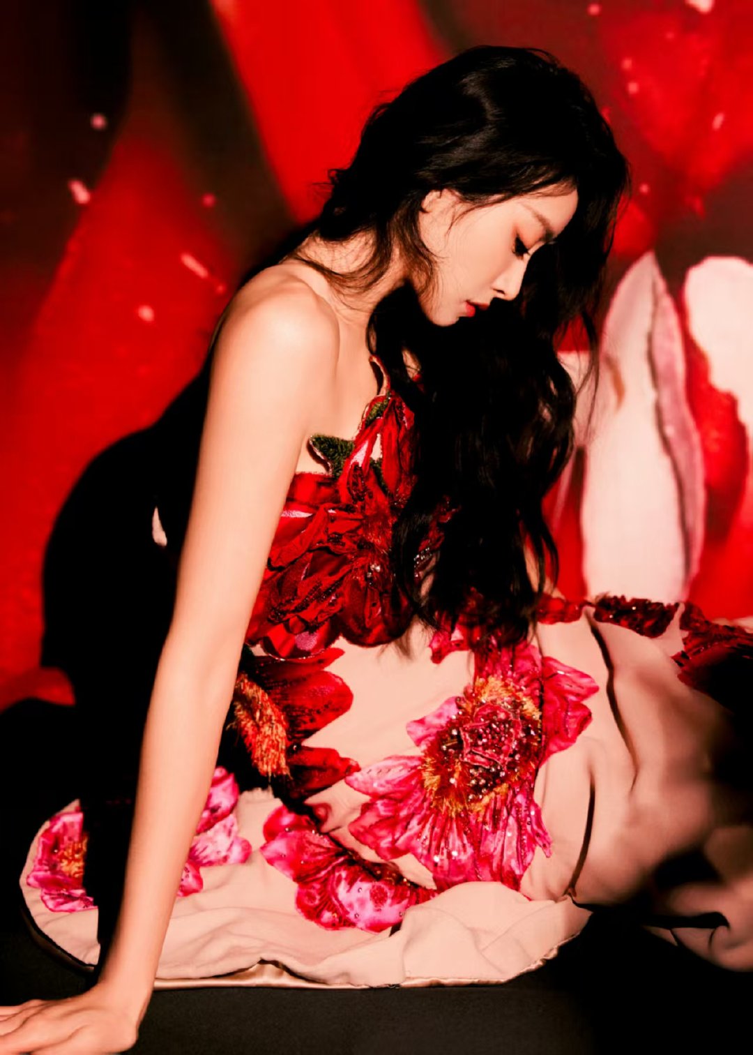 宋茜复古法式花苞裙宋茜VOGUE盛典复古法式花苞裙造型。裙身的红粉花卉刺绣细腻华丽,花苞式廓形复古又别致,在红黑撞色的背景烘托下,尽显优雅法式风情。VOGUE直播