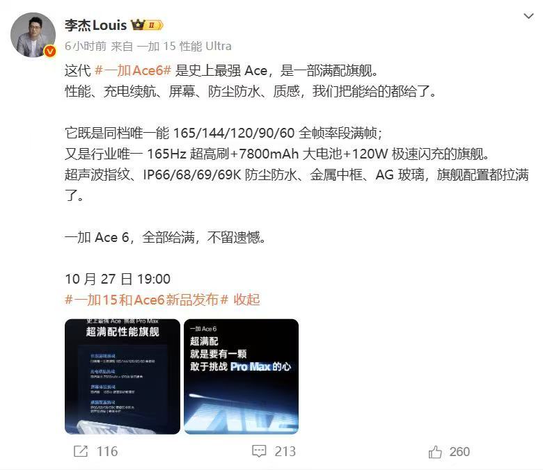 这款「大满配」一加 Ace 6将于10月27日发布,真心值得蹲一波!