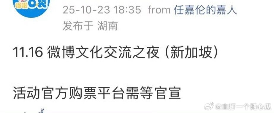 任嘉伦确认参加新加坡微博文化交流之夜,期待[打call][打call]