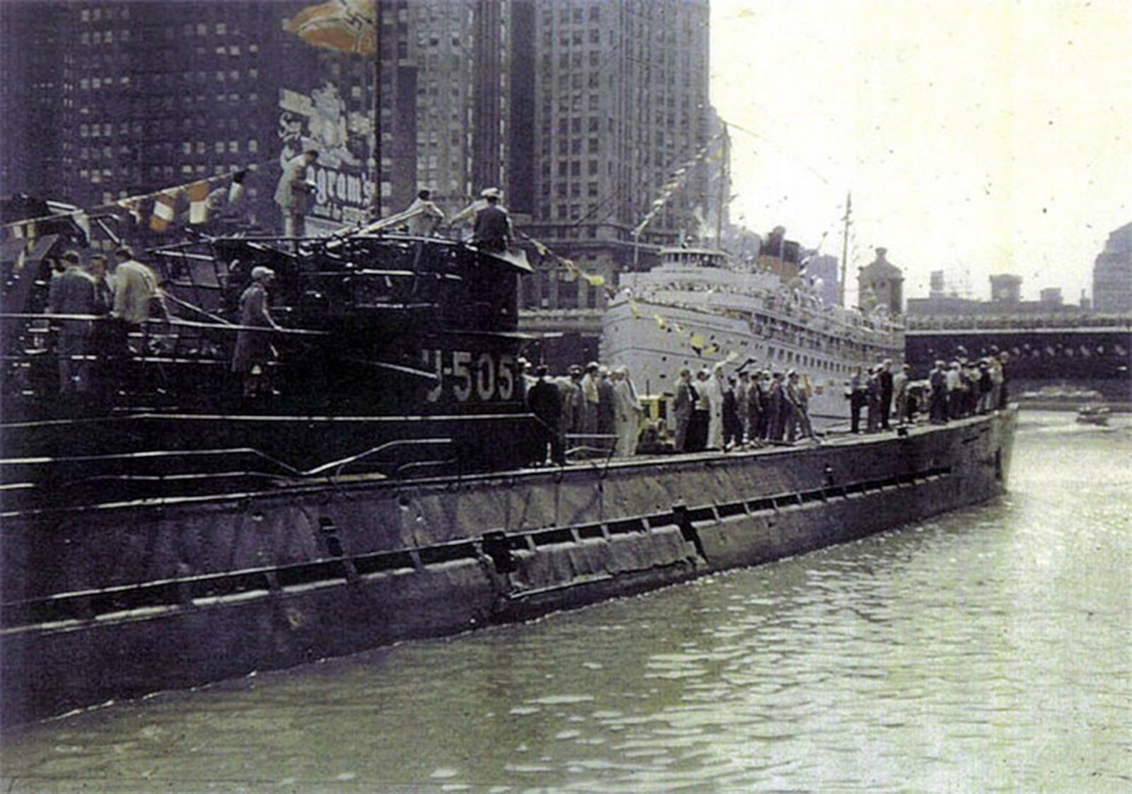 1945 年,被俘获的德国潜艇 U-505 抵达美国。