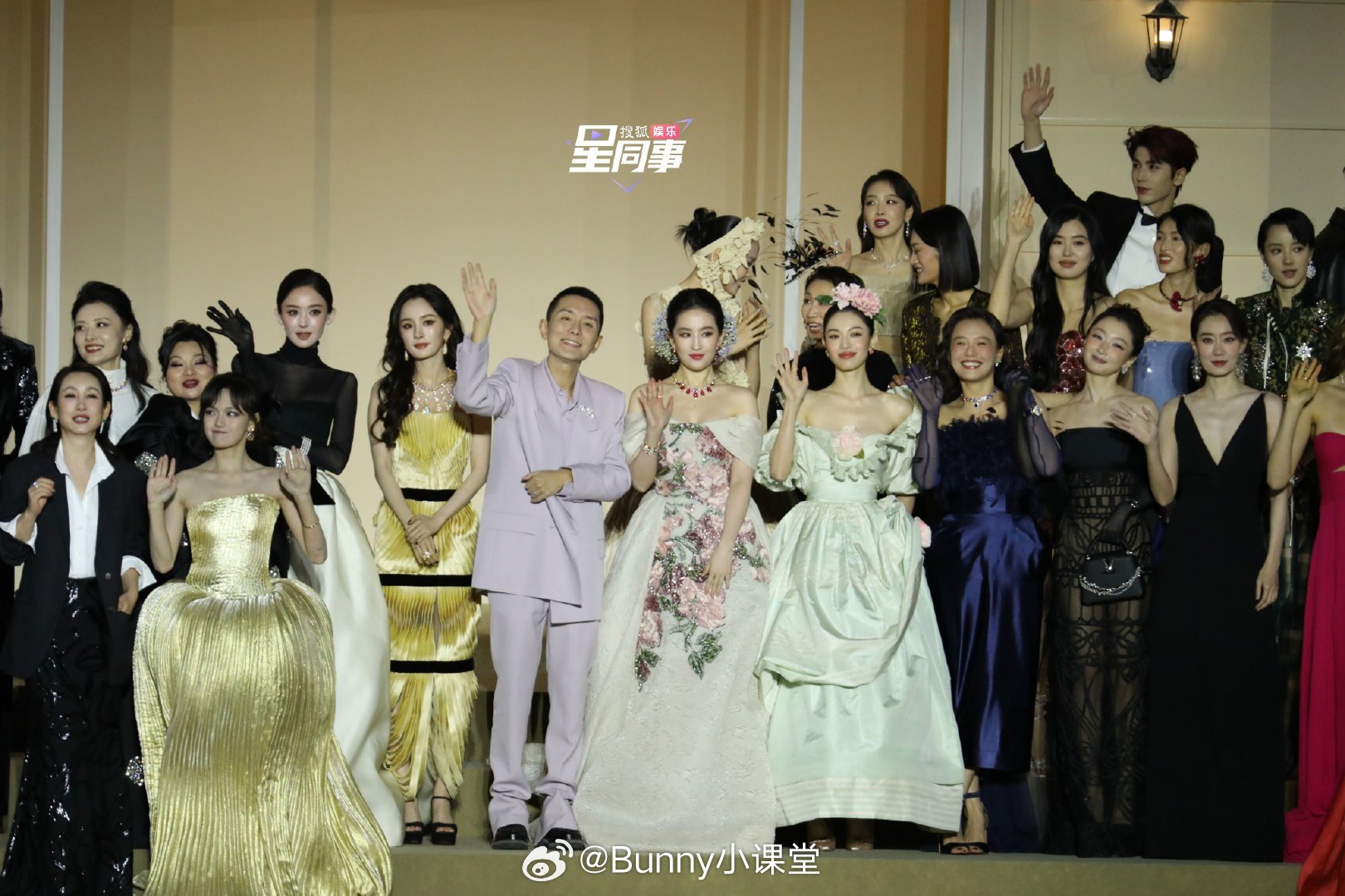 VOGUE盛典内场明星大合照来了,刘亦菲、杨幂分别站在刘冲两边。