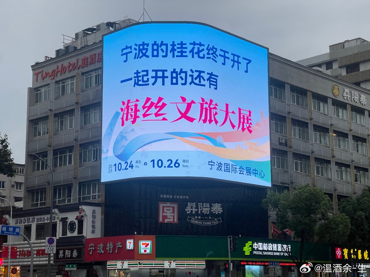 宁波的桂花和海丝文旅大展一起开了宁波的秋天太会了!满城桂花香刚飘起,2025海丝文旅大展就来了 。大屏海报把花香和海丝风情揉在一起,文艺又有梗。约上朋友,先去月湖闻桂,再去会展中心赶展,这才是秋天的正确打开方式! 2025海丝文旅大展宁波启幕